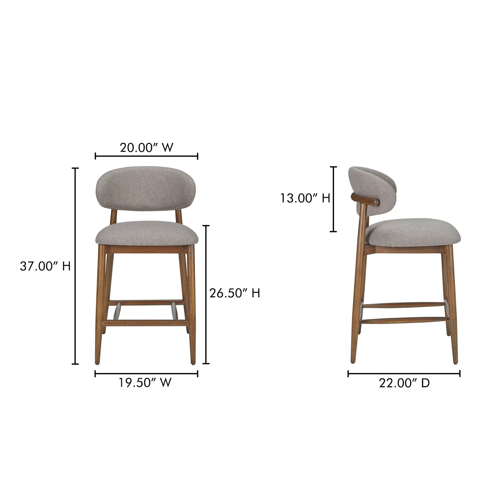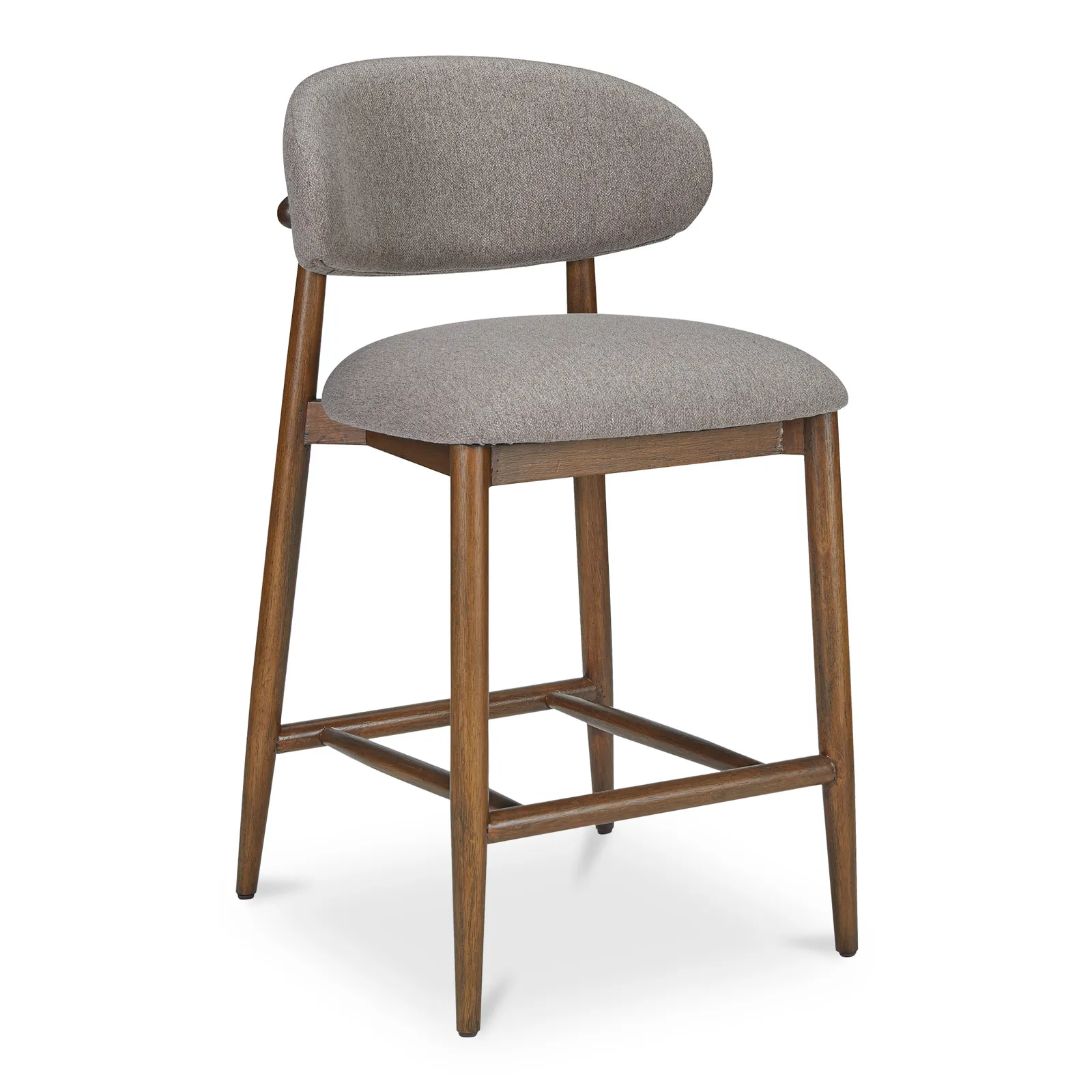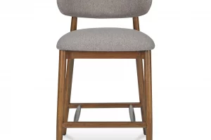 The Ellie counter stool features a padded winged backrest, a refined invitation to gather. A robust rubberwood frame bathed in a dark espresso brown finish harmonizes with the rustic, warm brown, easy-to-clean performance fabric upholstery, adding a vintage charm with modern convenience–a versatile design that complements a myriad of interior styles.