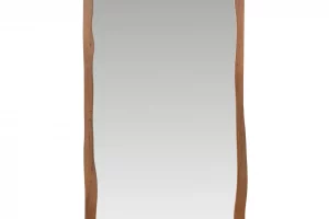 The Ellis mirror artfully fuses mid-century sensibility with contemporary flair. Encased by a robust solid Acacia wood frame, it features an alluring free-form wave design, finished in a mid-tone walnut brown that enriches its allure with a timeless warmth. Its unique shape allow for creative expression in any room it graces.