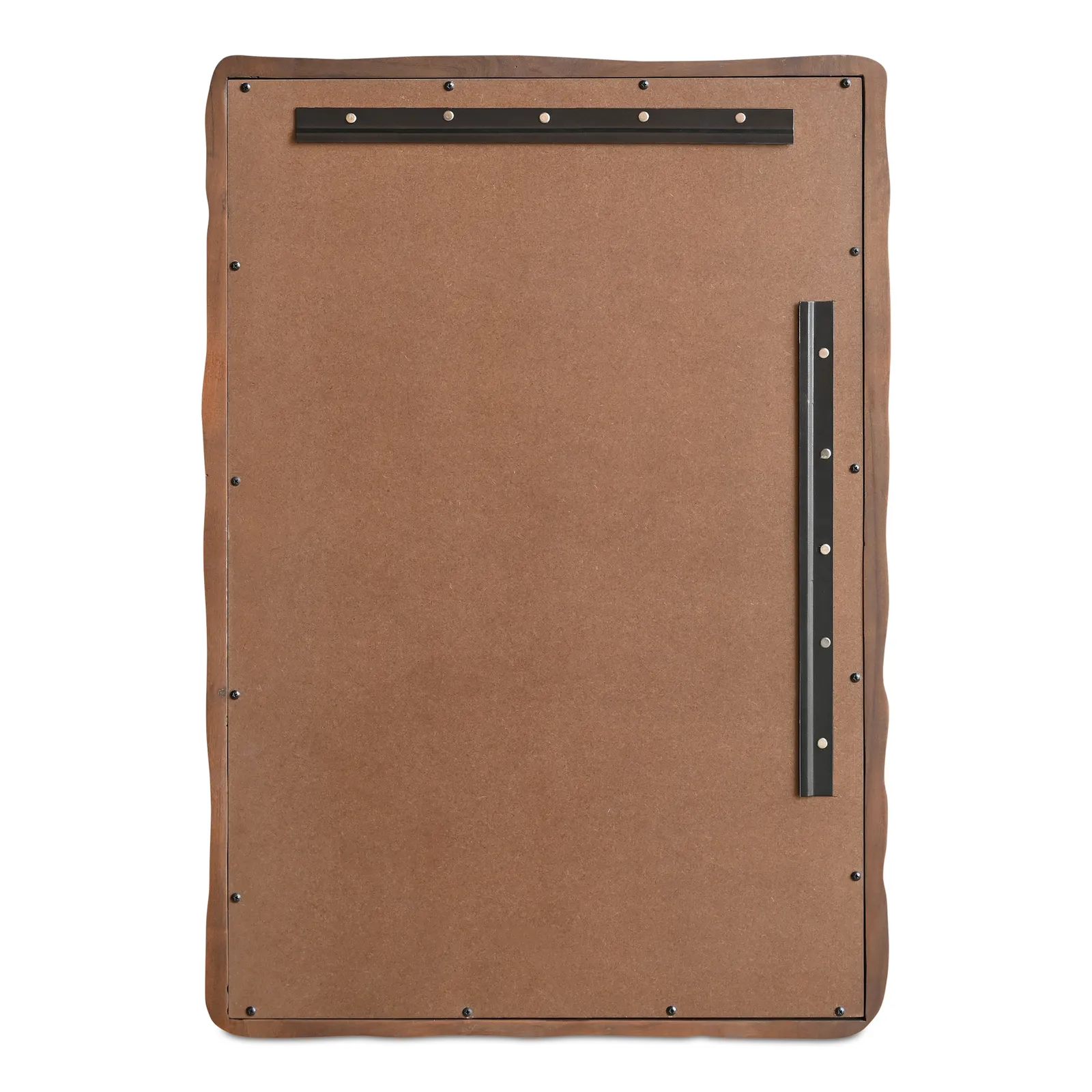 The Ellis mirror artfully fuses mid-century sensibility with contemporary flair. Encased by a robust solid Acacia wood frame, it features an alluring free-form wave design, finished in a mid-tone walnut brown that enriches its allure with a timeless warmth. Its unique shape and dual hanging orientation options allow for creative expression in any room it graces.