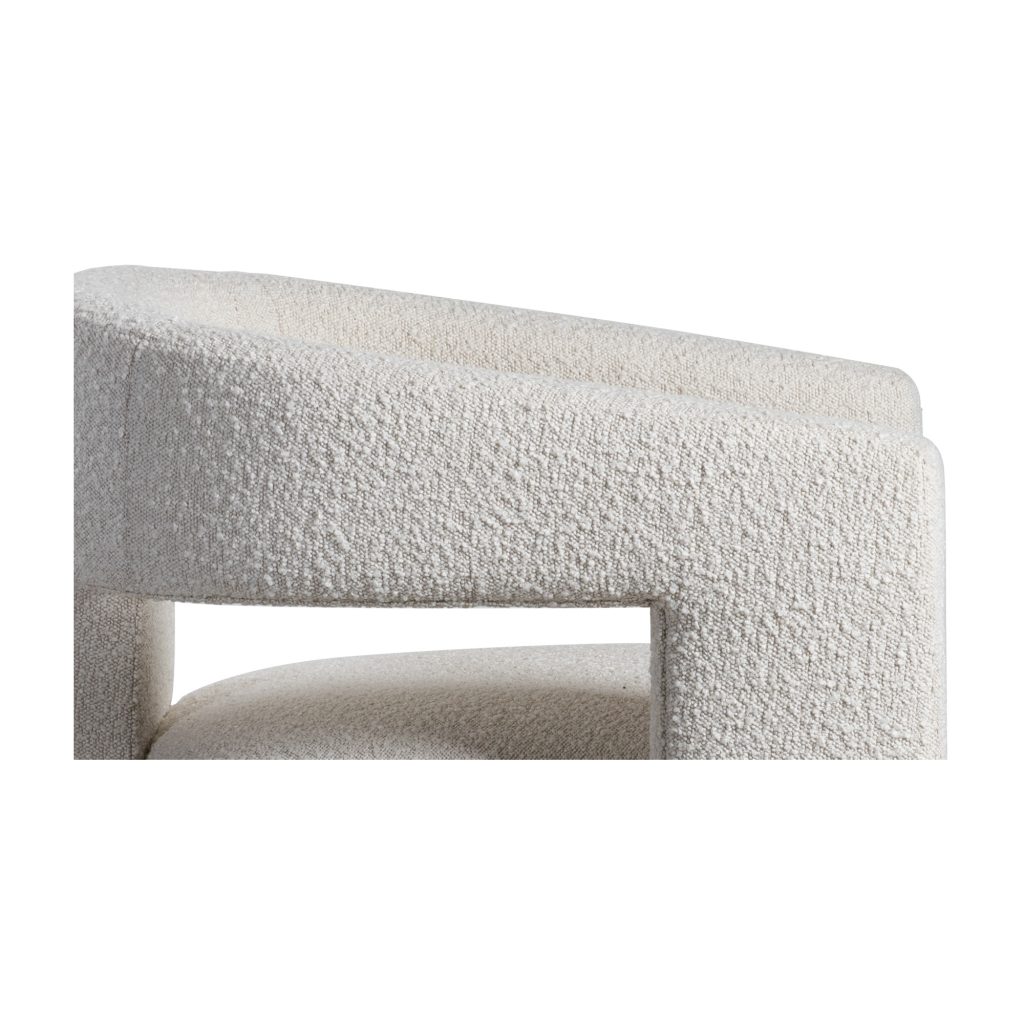 The armchair, refined. With Elo, the essential design elements of an armchair have been distilled to an utmost sculptural form while retaining 100% comfort. A modernist creation that embraces softness alongside sculptured simplicity, settle right into the plushly padded seat and curvaceous embrace of Elo’s softly rounded back and armrests. A durable, molded frame of solid plywood offers support, while its tactile upholstery offers enduring quality. Highly styled, love Elo three ways as a desk chair, dining chair, or singular statement accent chair. Surprising from every angle, Elo blurs the boundaries between art and furniture as a most welcoming, fluid design.