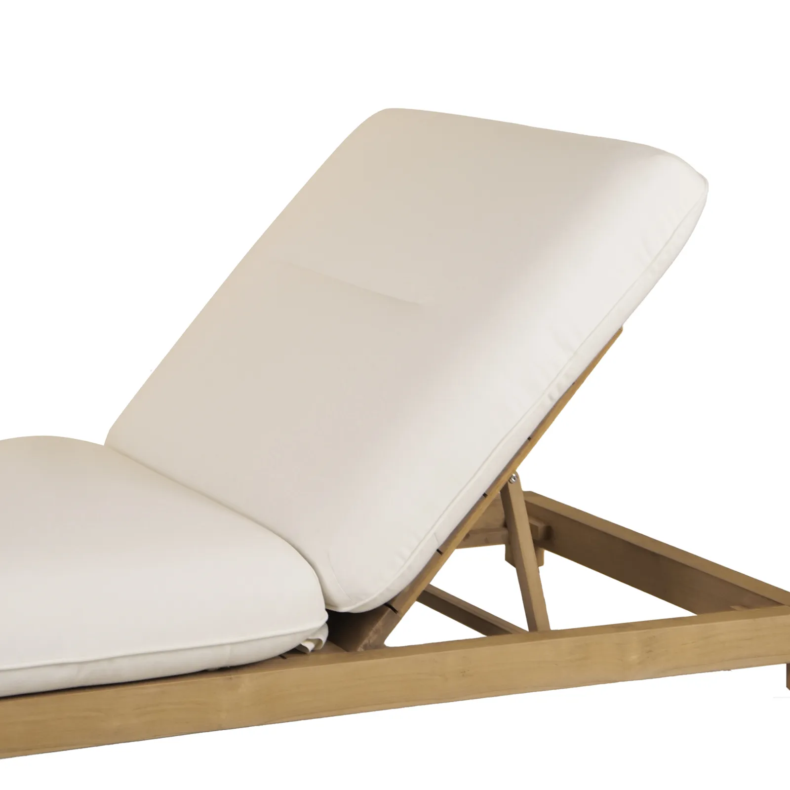 The Enzo outdoor adjustable lounge chair is an indulgence in contemporary comfort for an outdoor oasis. This low-profile lounge chair features a solid teak frame and quick-dry foam cushions upholstered in 100% Olefin fabric. Adjustable to five positions, it offers customizable comfort. The white finish and modern design create a relaxed, lounging vibe perfect for patios or poolside.