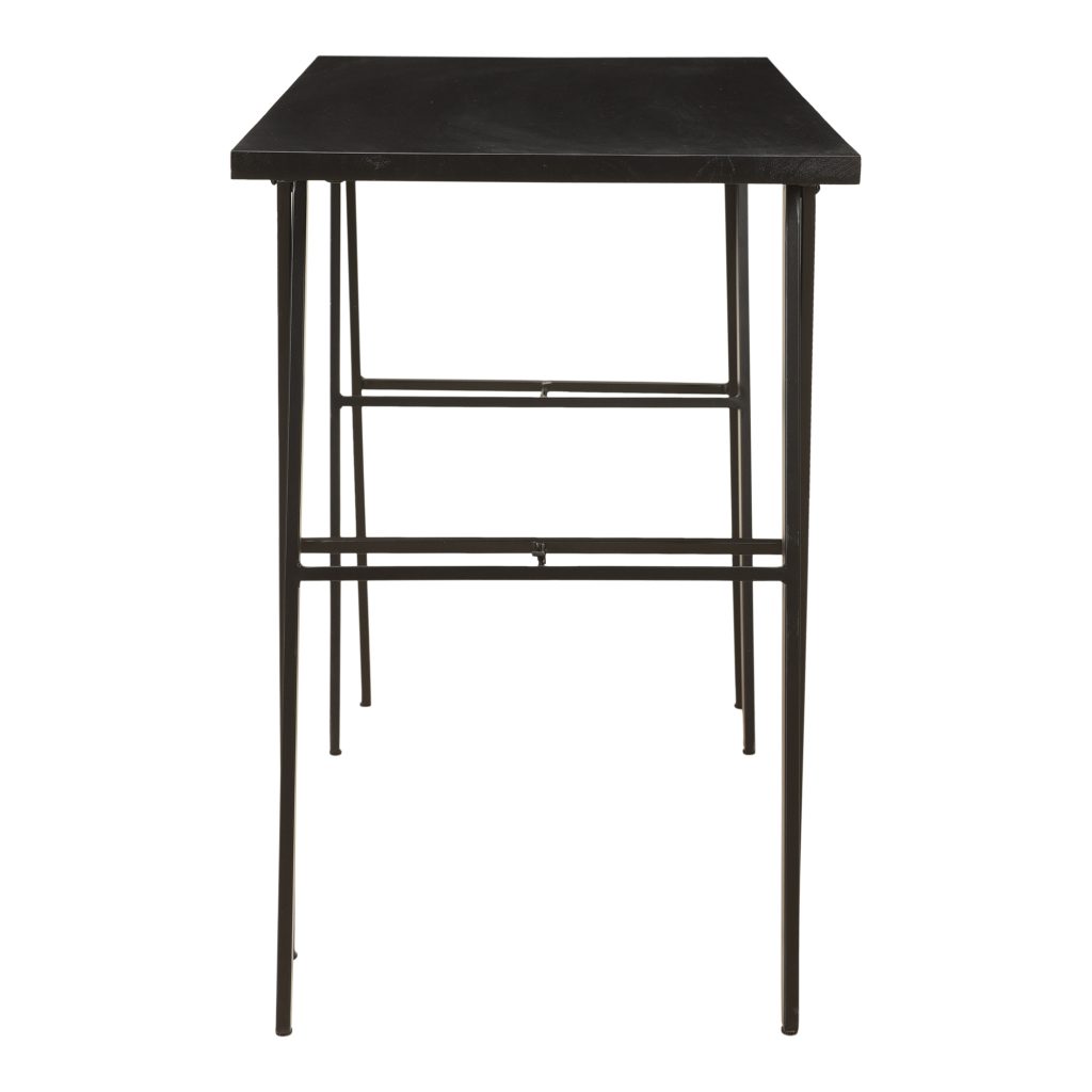 Sleek and sophisticated, the Esme desk’s contemporary black frame features slim, hairpin iron legs filled with geometric intrigue. Its solid Acacia top in a moody black finish adds a stately manner to any office space. With plenty of legroom and desktop space to keep you comfortable, organized and ready to take on the day – create the perfect home office setup with this gorgeously simple desk.