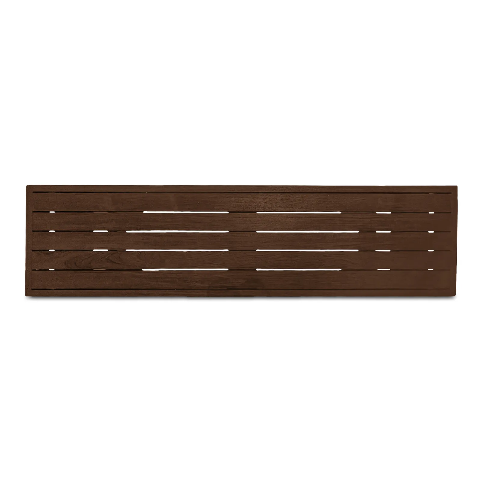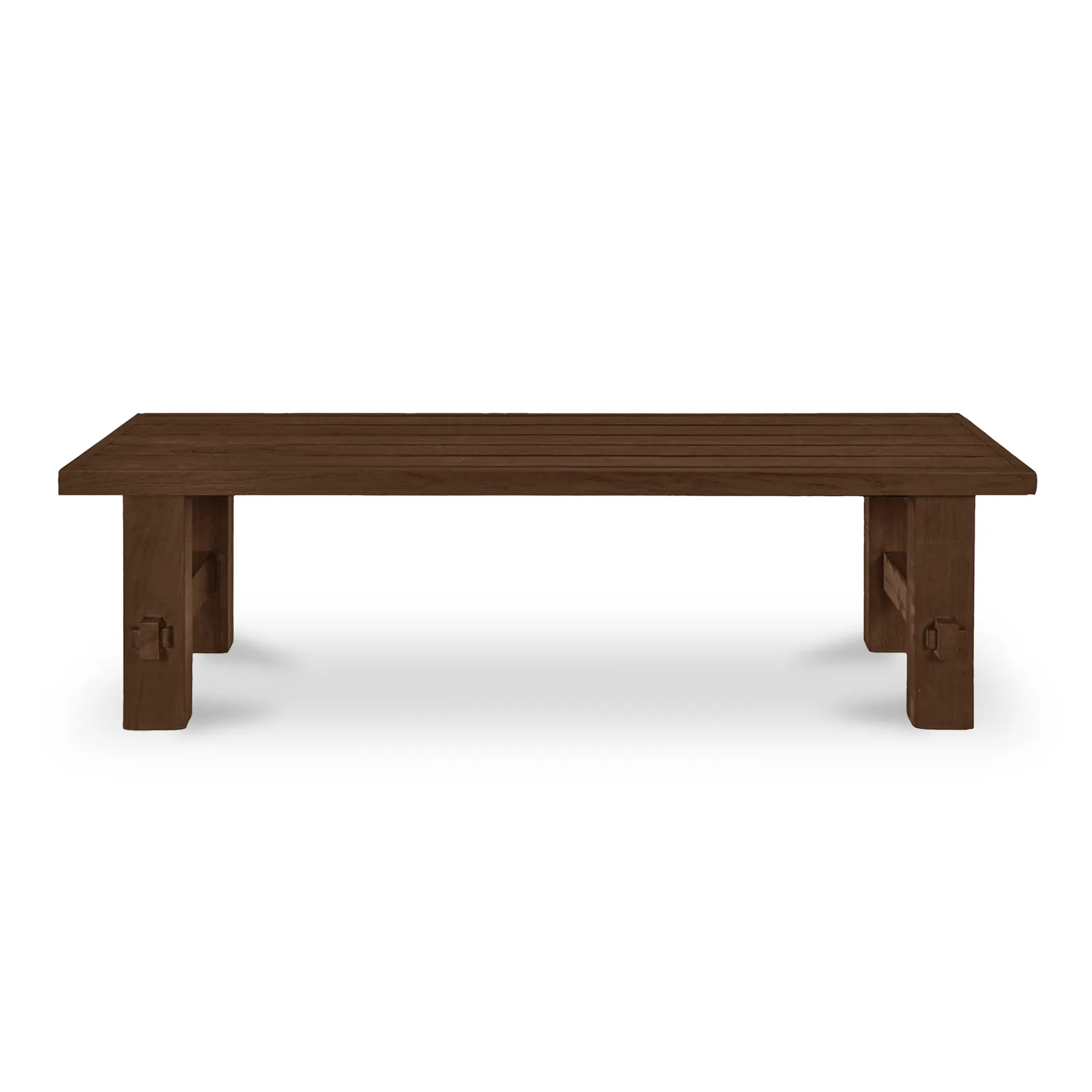 The Esmond outdoor dining bench embraces traditional charm to create an outdoor sanctuary. This FSC-certified solid teak bench features a slatted top with stretchers and joinery detailing, creating a classic look with refined appeal. The brown finish adds warmth, while its durable and weather-resistant design provides comfortable seating for outdoor gatherings and everyday use.