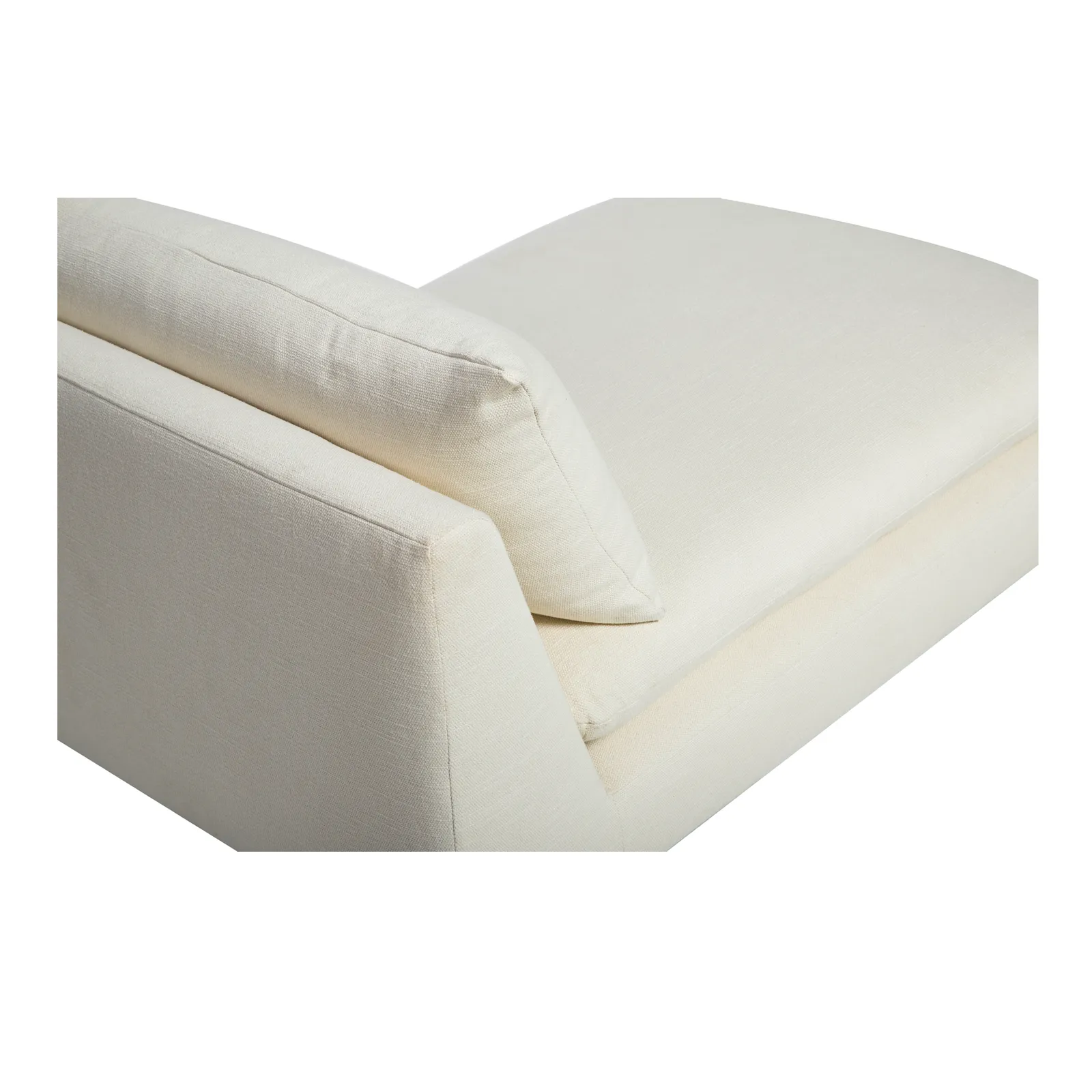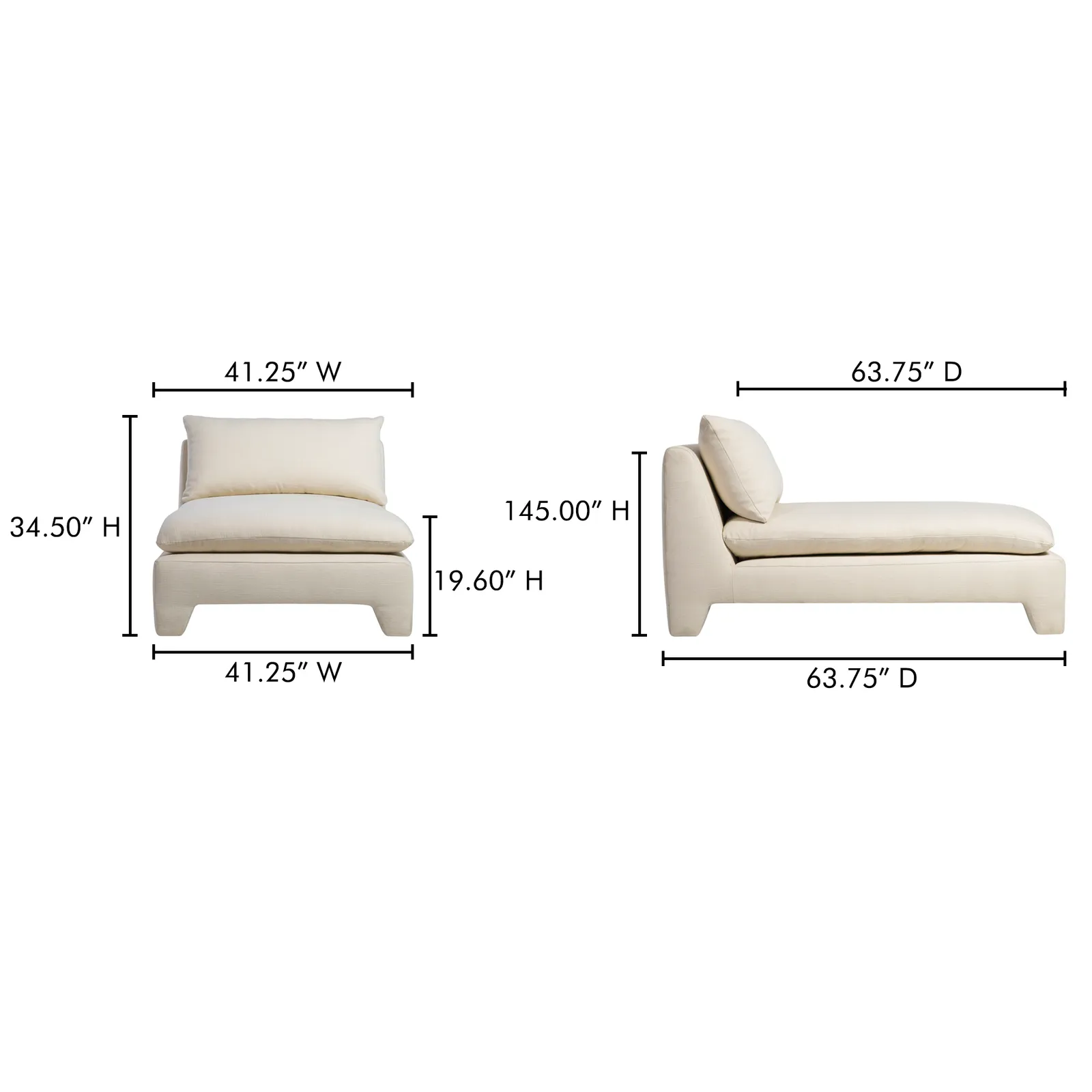 The Estelle chaise seamlessly blends vintage inspiration with a contemporary approach, pairing its armless silhouette with fully upholstered padded legs. A sink-into seat brings the plush comfort of Dacron fiber and feather-fill, while the linen blend fabric adds a relaxed, lived-in look.