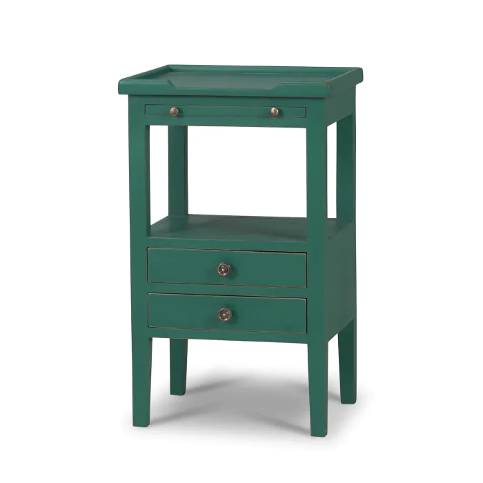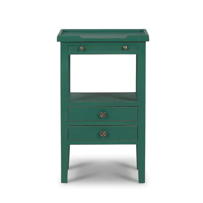 A tray-style tabletop and pull-out shelf add character and functionality to the Eton 2-Drawer Side Table. Ideal for the living area, this table features solid mahogany with a pair of dovetail drawers that create a lower shelf for elegant display. This piece is offered with a vast array of finish and distress options to create a truly custom design.
