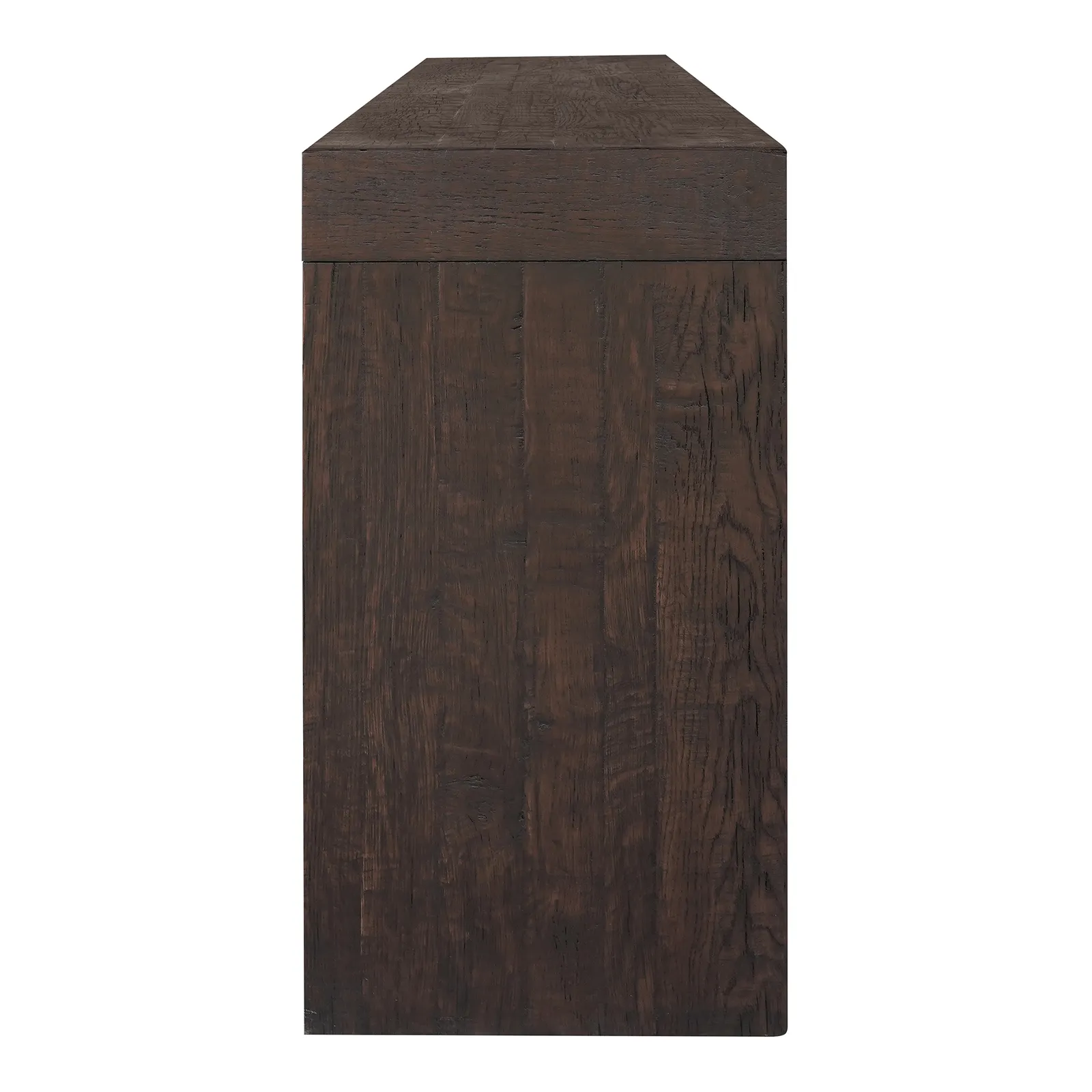 Hand-painted and crafted from solid reclaimed oak, beautiful natural grains, knots and imperfections take center stage with the Evander console table. Its modern, blocked construction balances rustic and contemporary design with organic energy, adding character and warmth to any space.