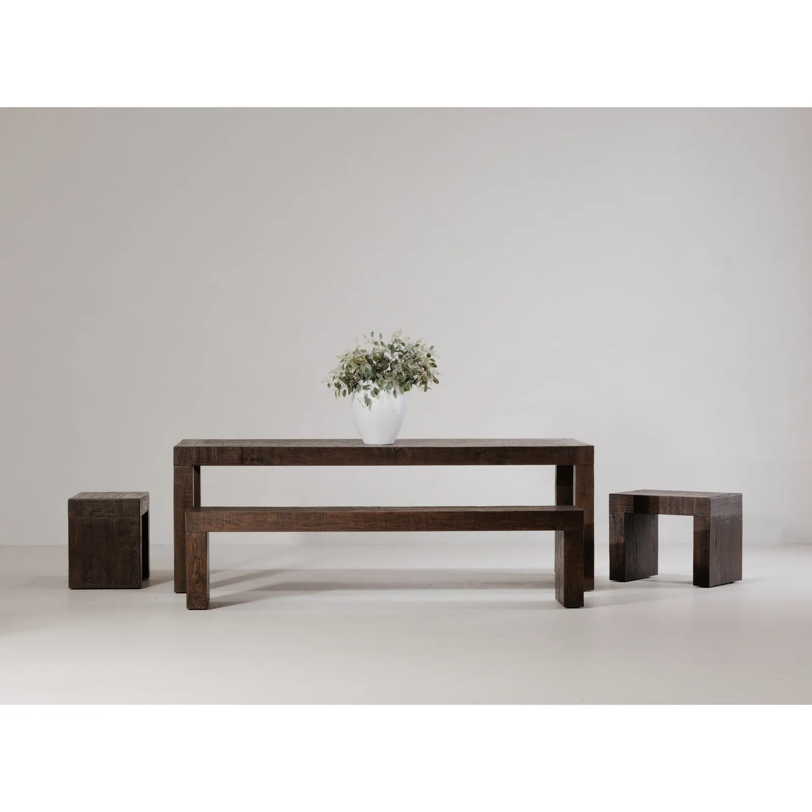 Hand-painted & crafted from solid reclaimed oak, beautiful natural grains, knots and imperfections take center stage with the Evander dining stool. Its modern, blocked construction balances rustic and contemporary design with organic energy, adding character and warmth to any space.