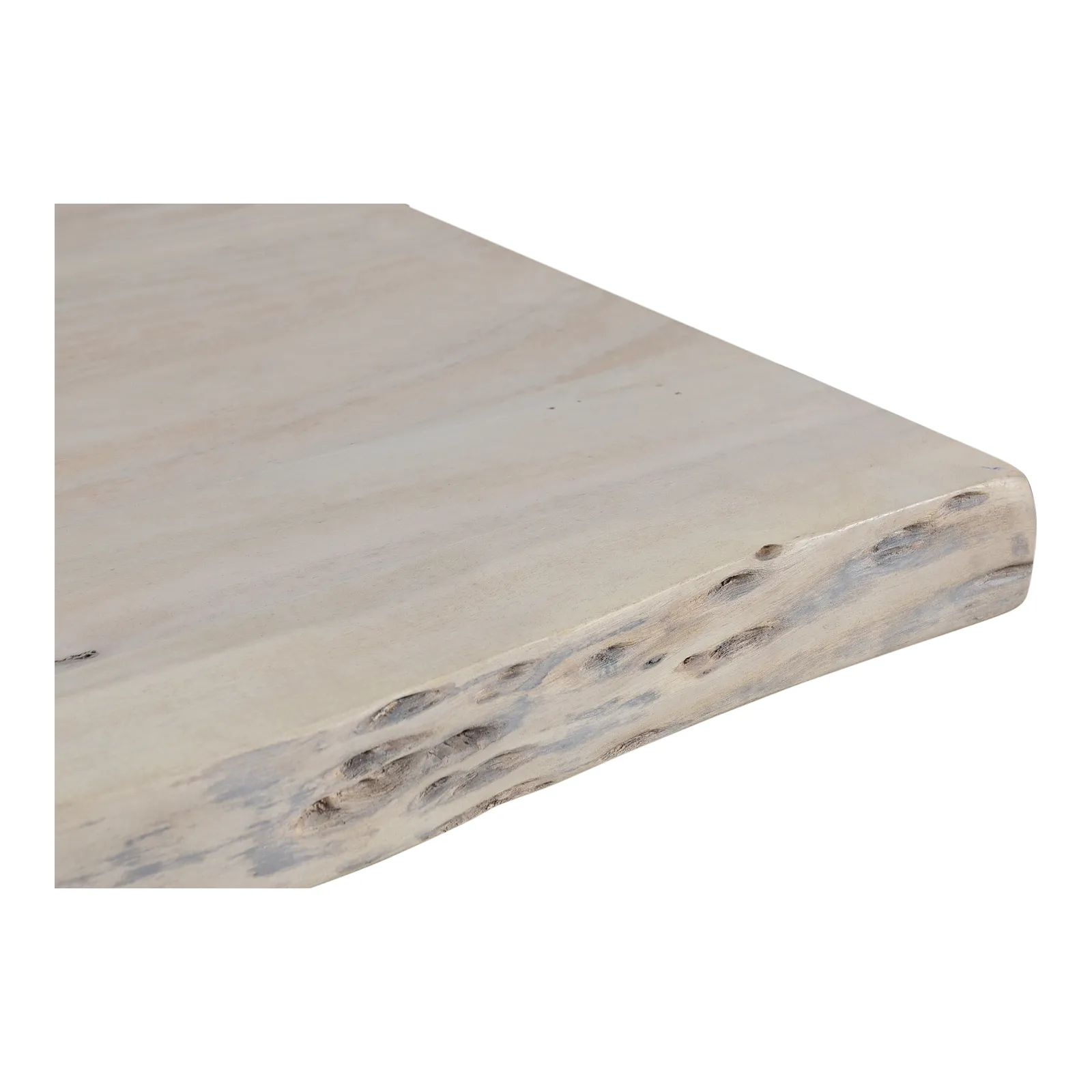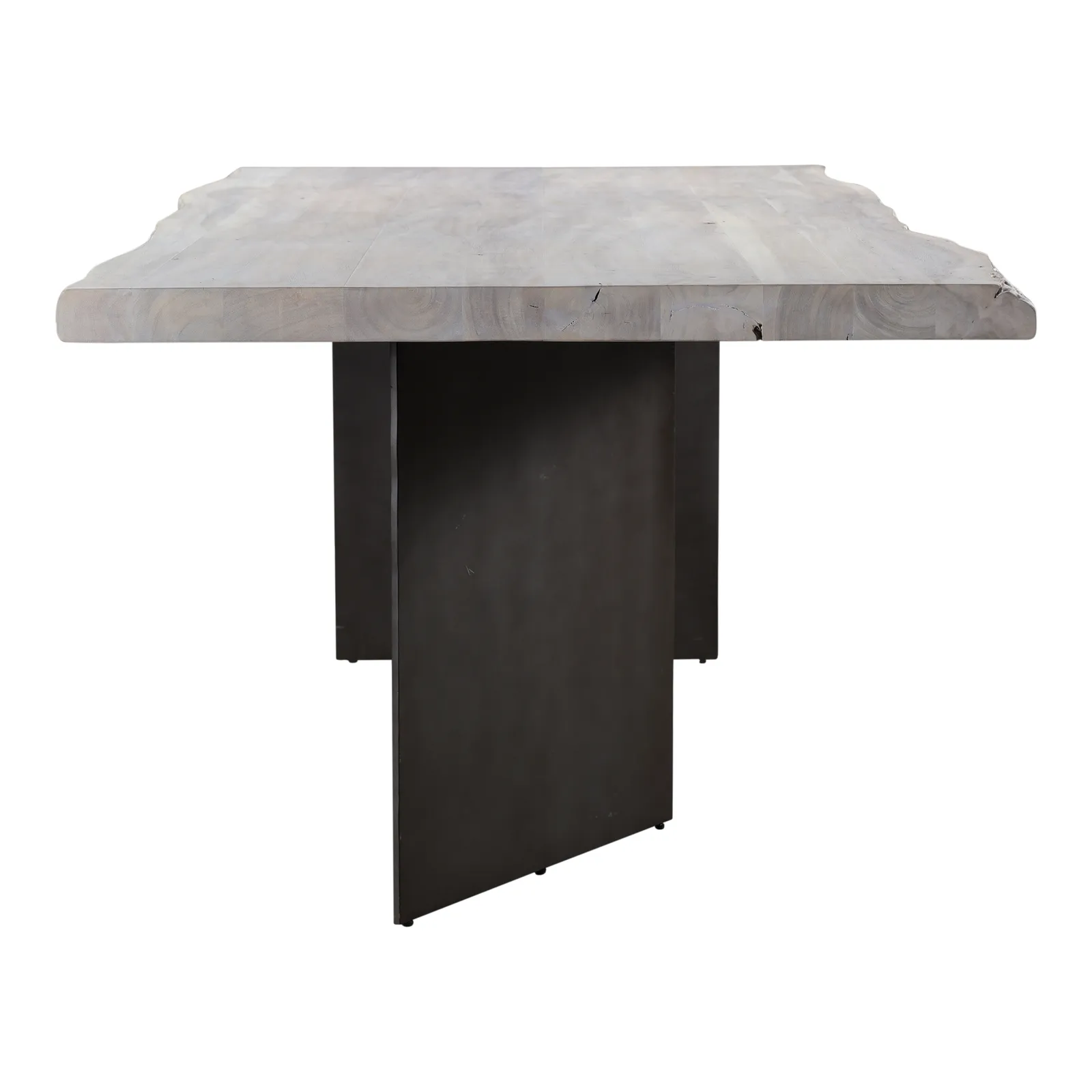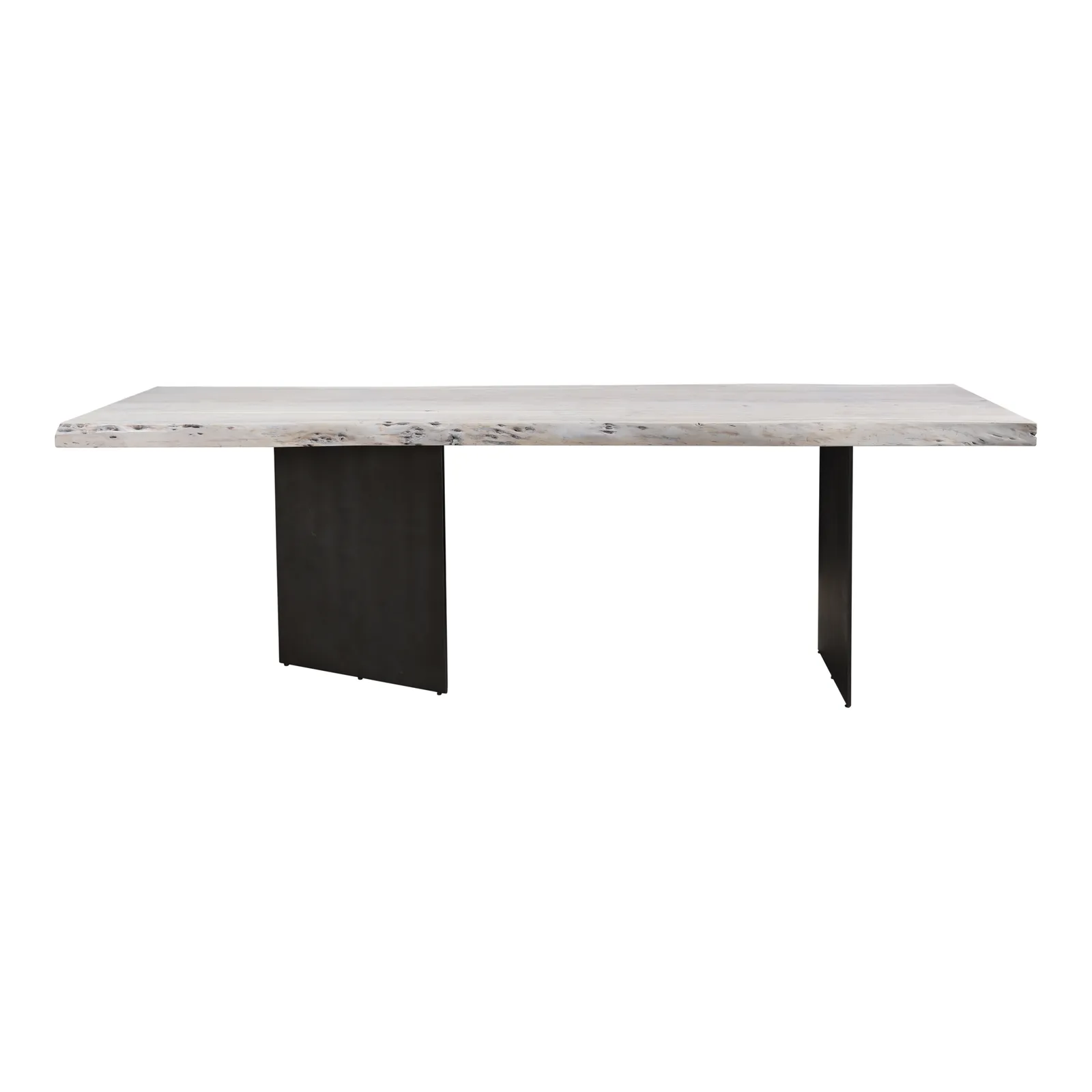With a live edge, the Evans Dining Table is the center of the fun. Made with a white washed solid acacia wood and dark iron legs, this table features its own unique combination of knots and grains. Whether you’re looking for an industrial or contemporary modern piece, this table will be the perfect fit.