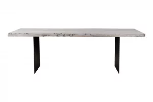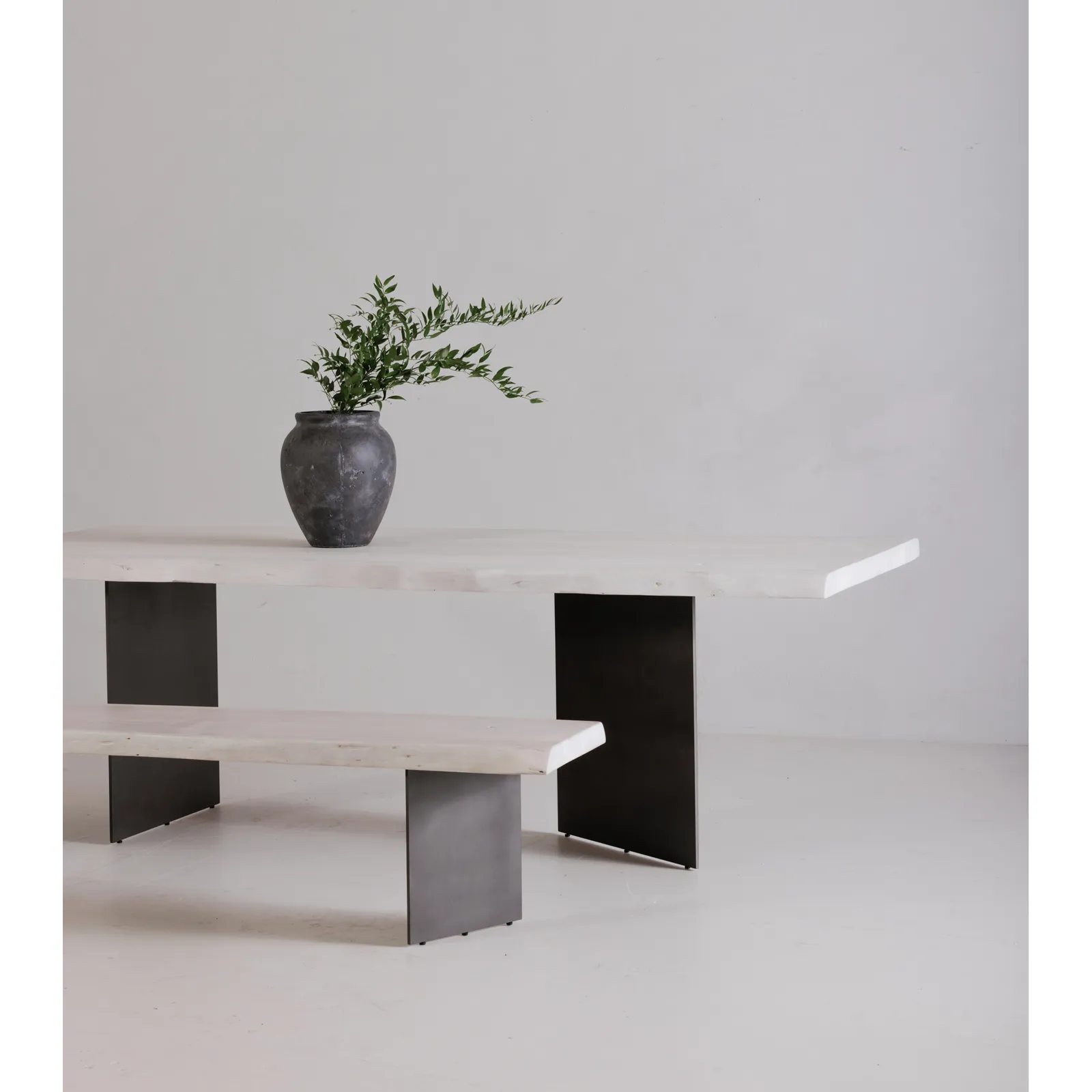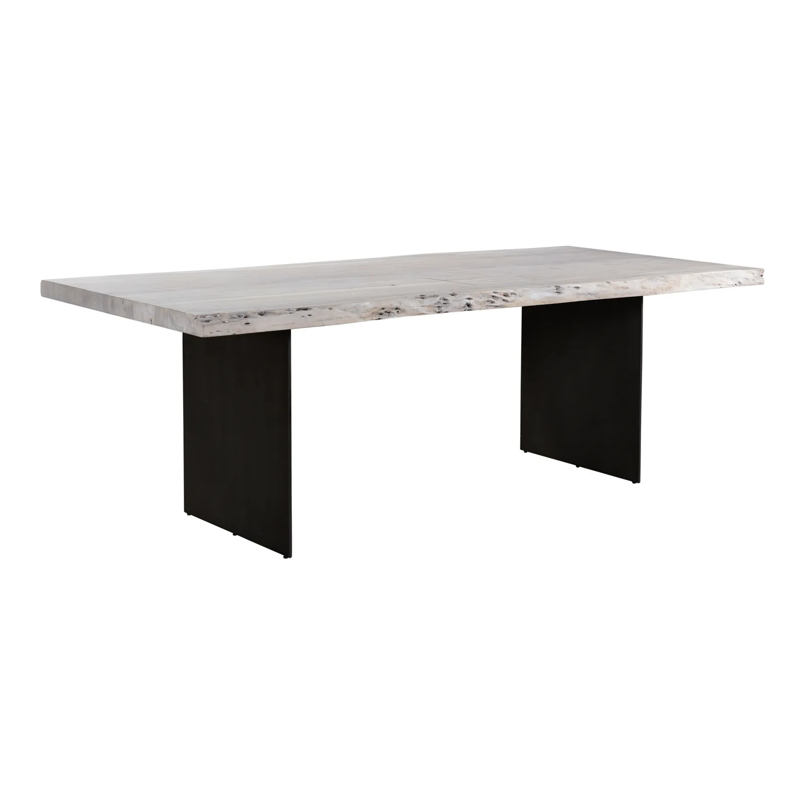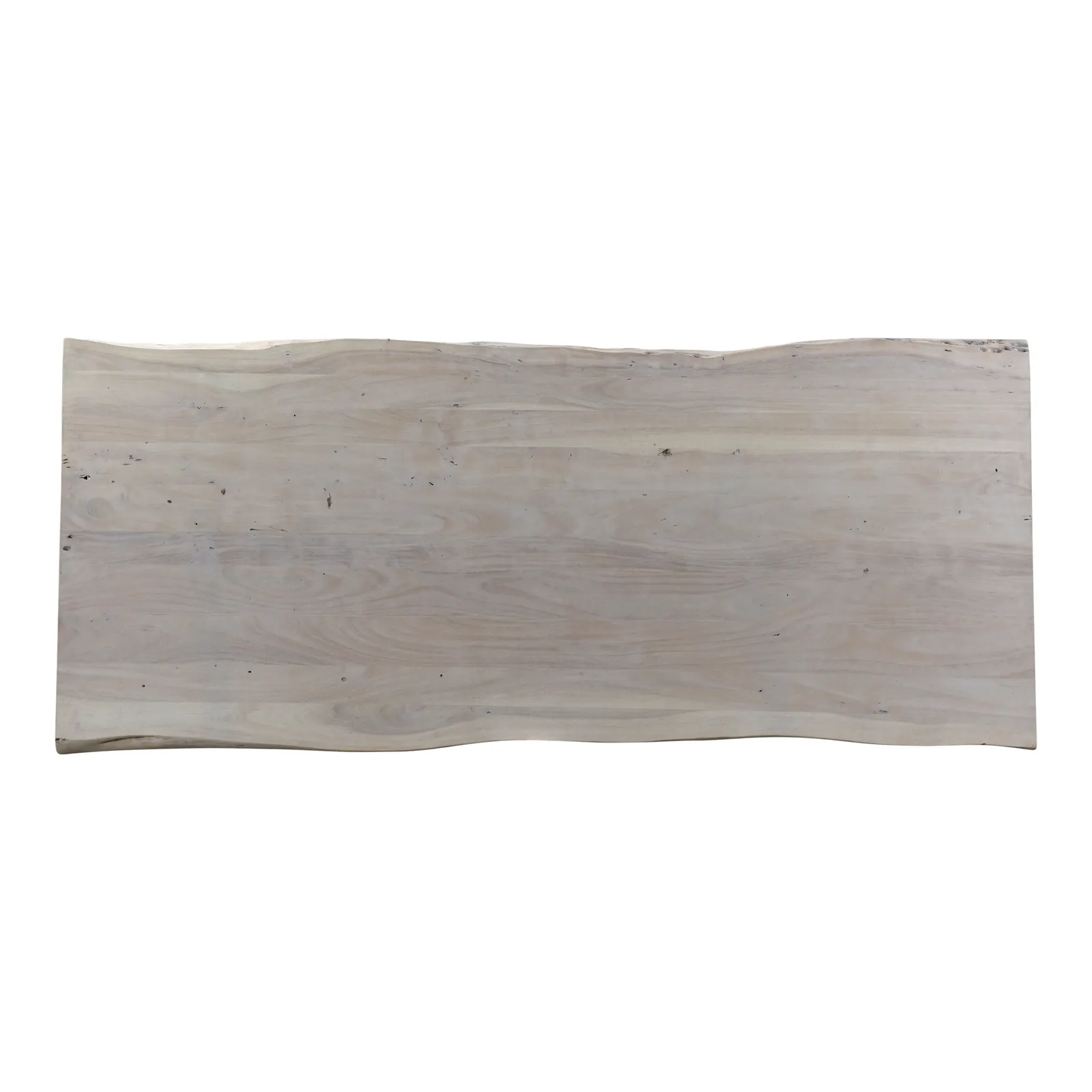 With a live edge, the Evans Dining Table is the center of the fun. Made with a white washed solid acacia wood and dark iron legs, this table features its own unique combination of knots and grains. Whether you’re looking for an industrial or contemporary modern piece, this table will be the perfect fit.