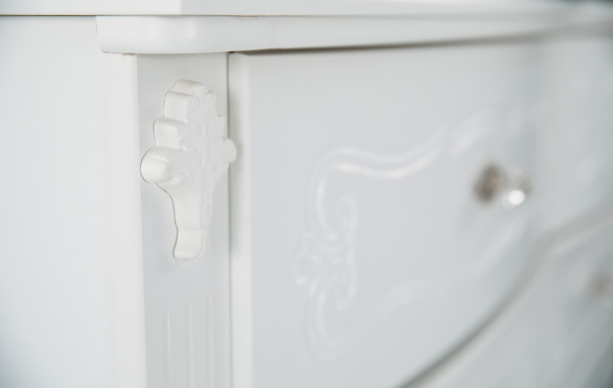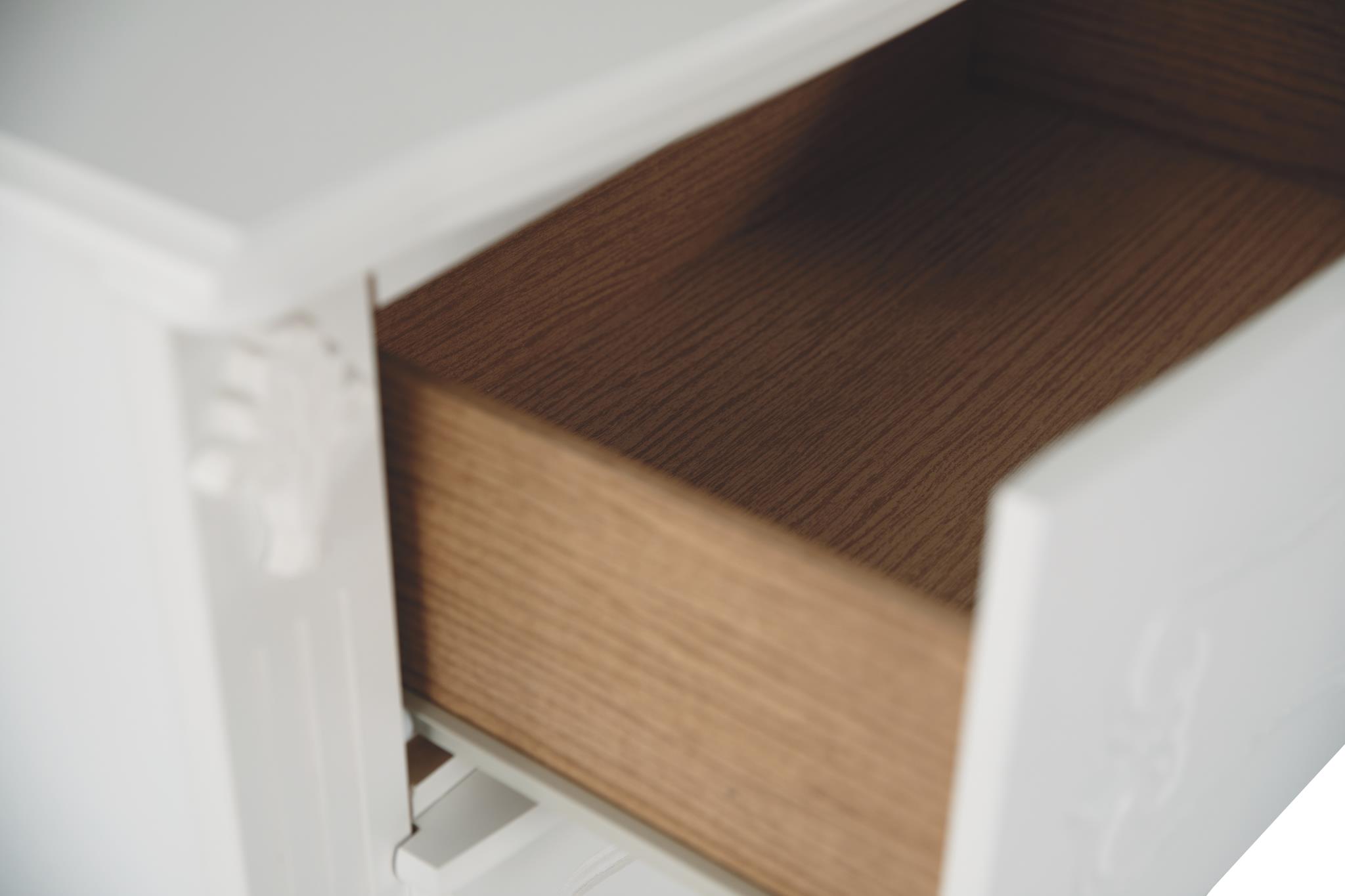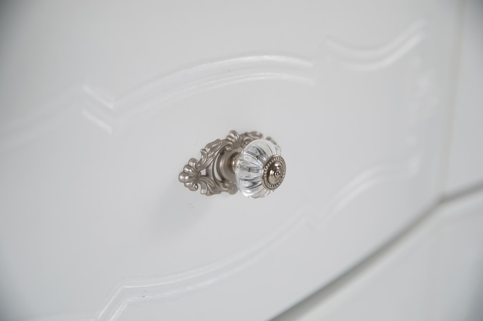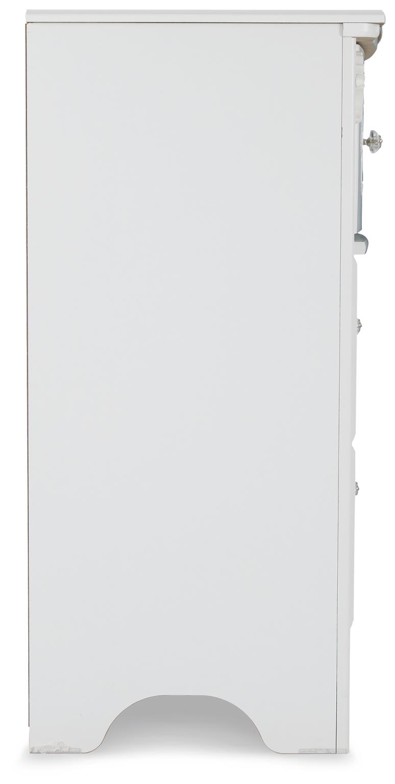 Inspired by French provincial style,,,, this dresser is perfect for la petite mademoiselle. Drawers are embossed with an eye-catching decorative motif that’s très chic. Luminous finish complements every color of the rainbow.