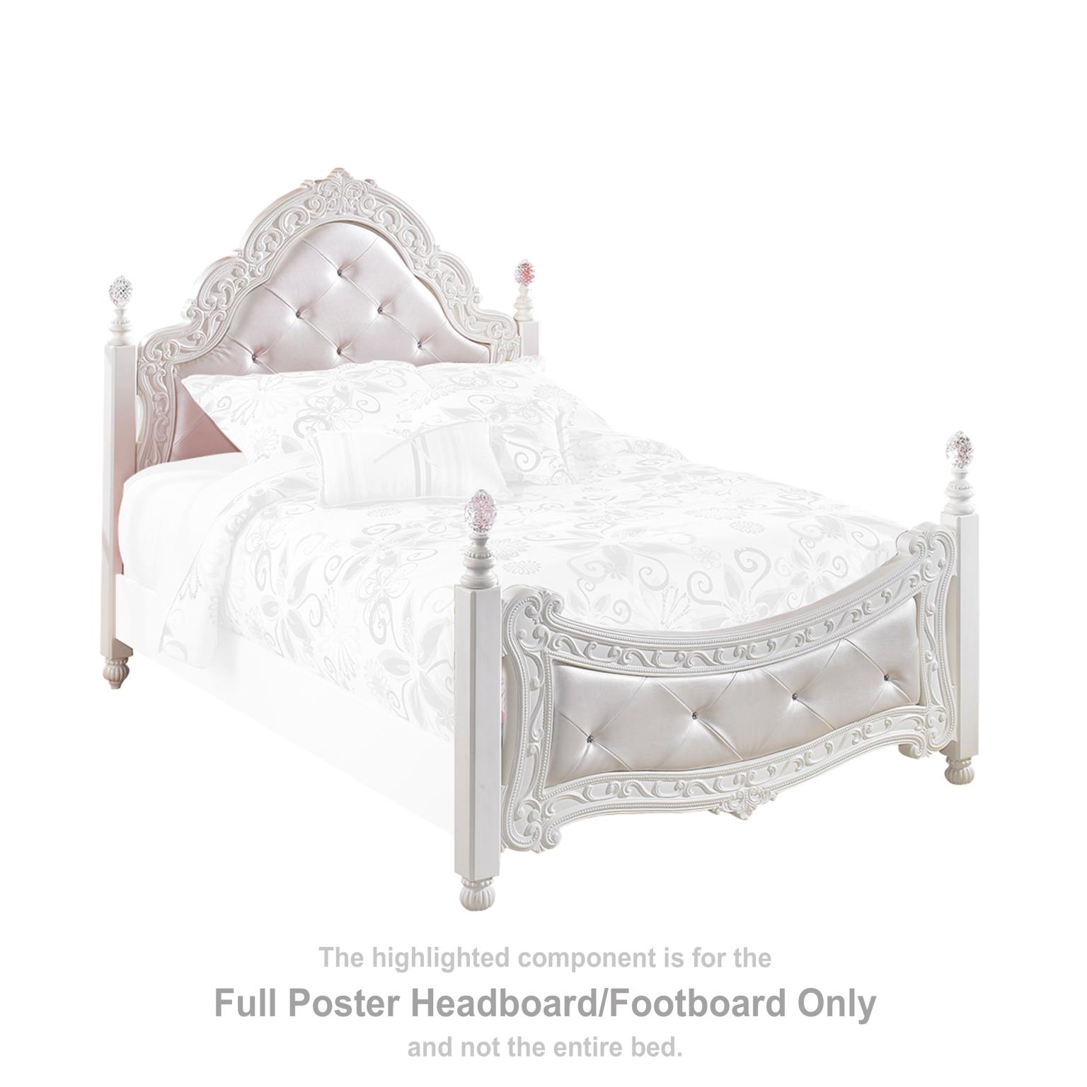 Inspired by French provincial style,,,, this full poster headboard/footboard is perfect for la petite mademoiselle. Embossed with a decorative motif of rosettes and appliques,,,, the detailed framework is beautiful in every way. Satiny tufted upholstery is a dream come true. Mattress available,,,, sold separately.