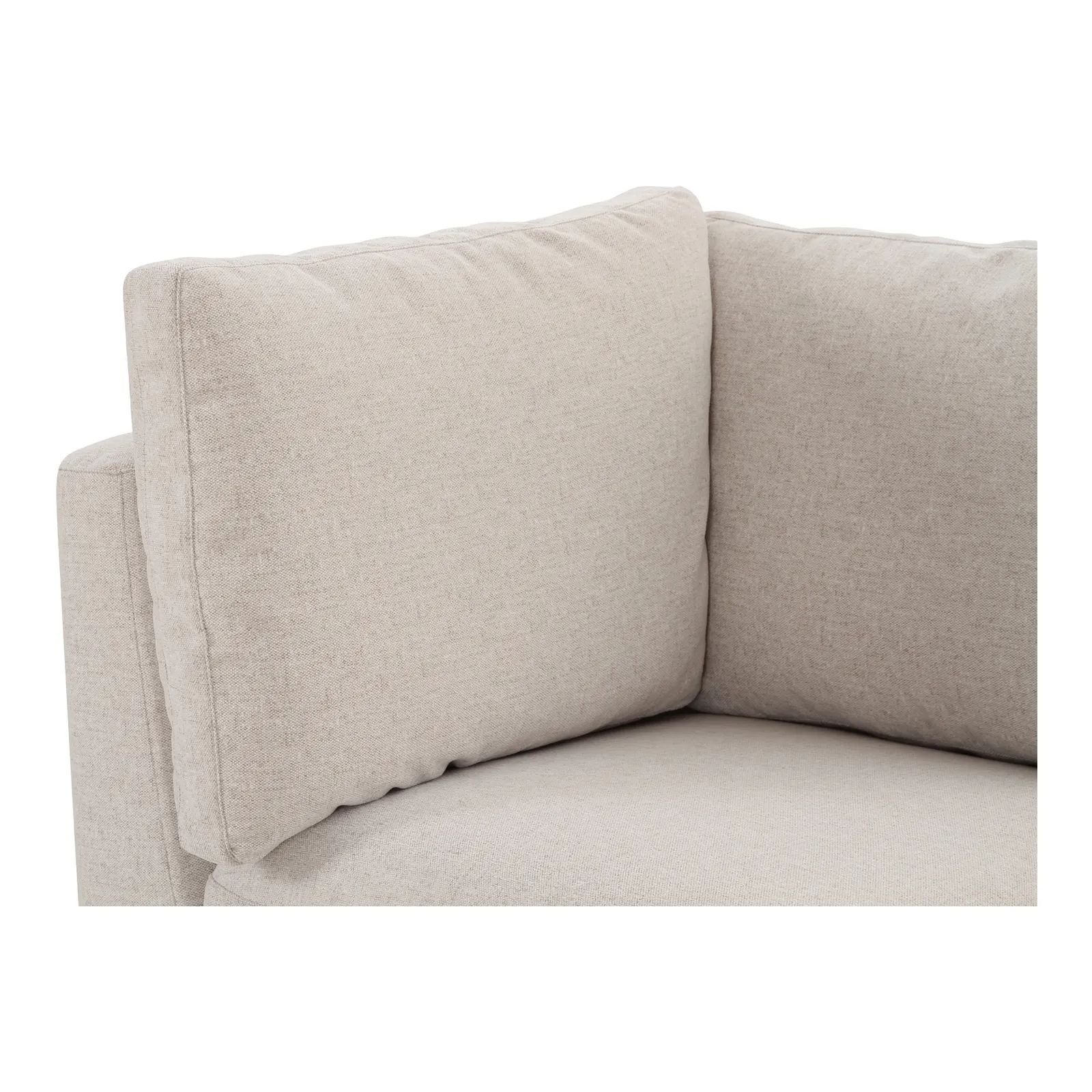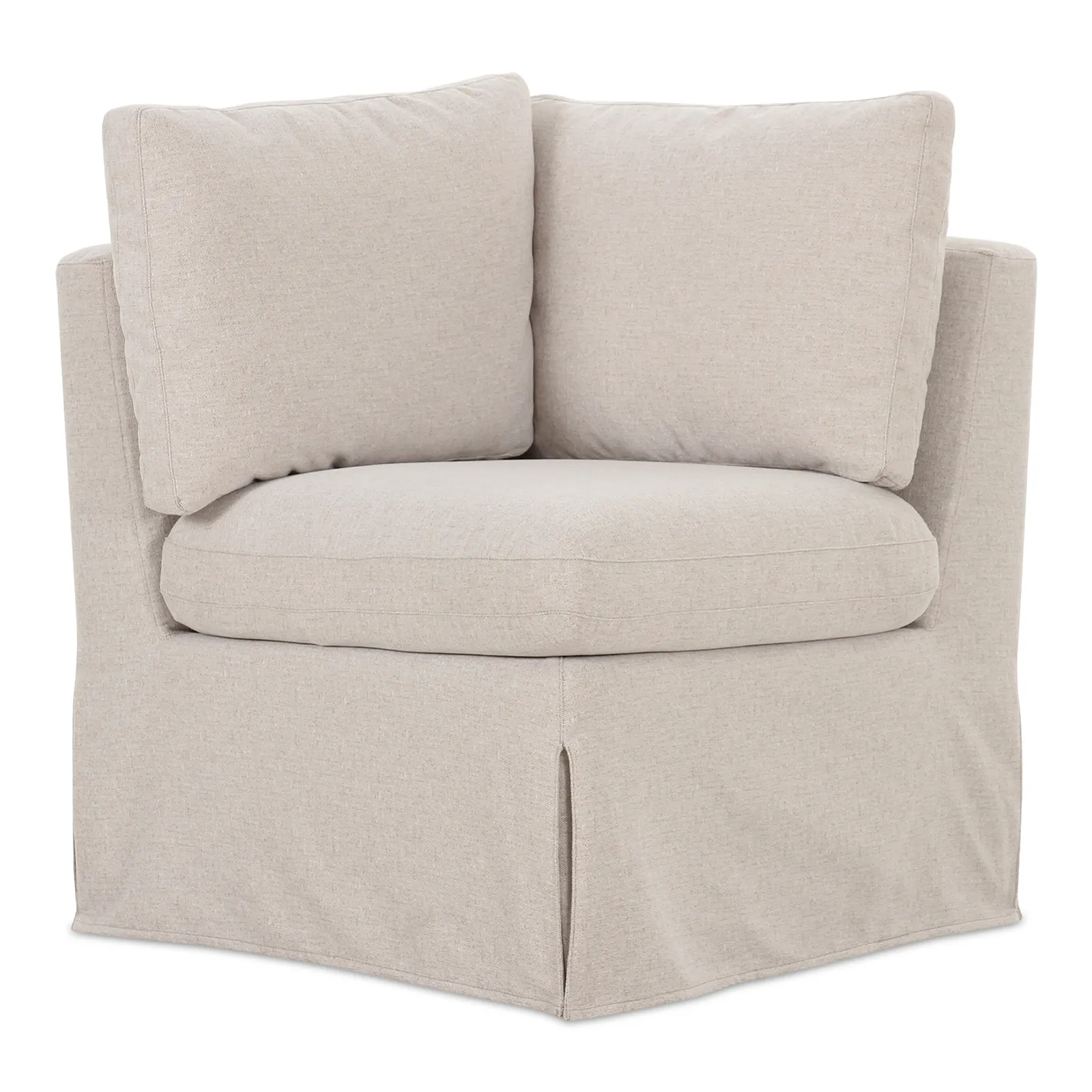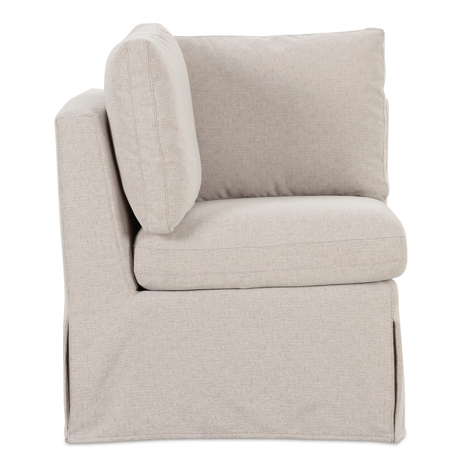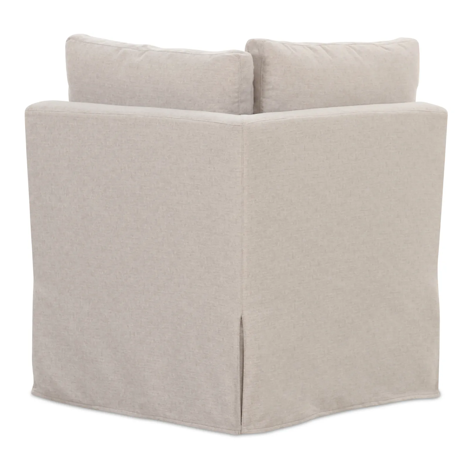 The Fable slipcover dining corner chair’s snug-fitting, washable slipcover with inverted pleats offers a tidy appearance and effortless upkeep. A slight tilt encourages a relaxed seating posture with a pillow back and seat cushions for comfort. Designed to be modular, it includes alligator clips to connect with other pieces in the collection, adapting seamlessly to various dining table sizes.