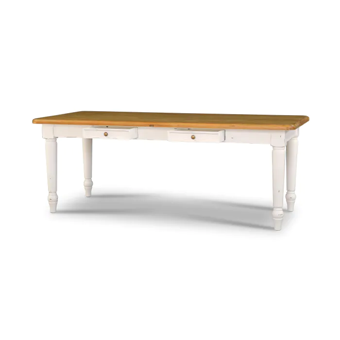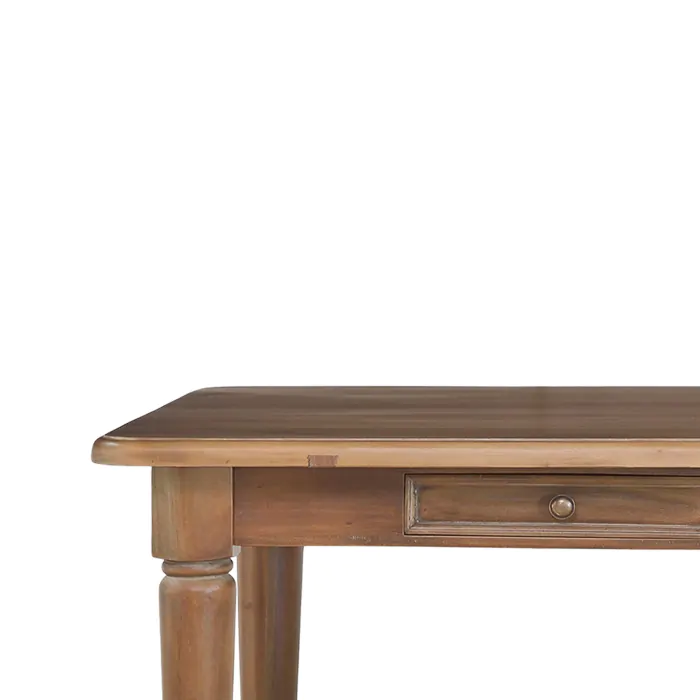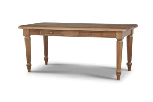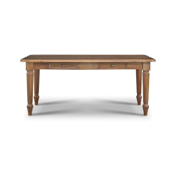 Masterfully designed, the Farmhouse Dining Table is a beauty in any traditional dining room. With graceful turned legs and a classic rectangular shape, this solid mahogany table is perfect for gathering family and friends. This piece is offered with a vast array of finish and distress options to create a truly custom design. Commes in 3 sizes.