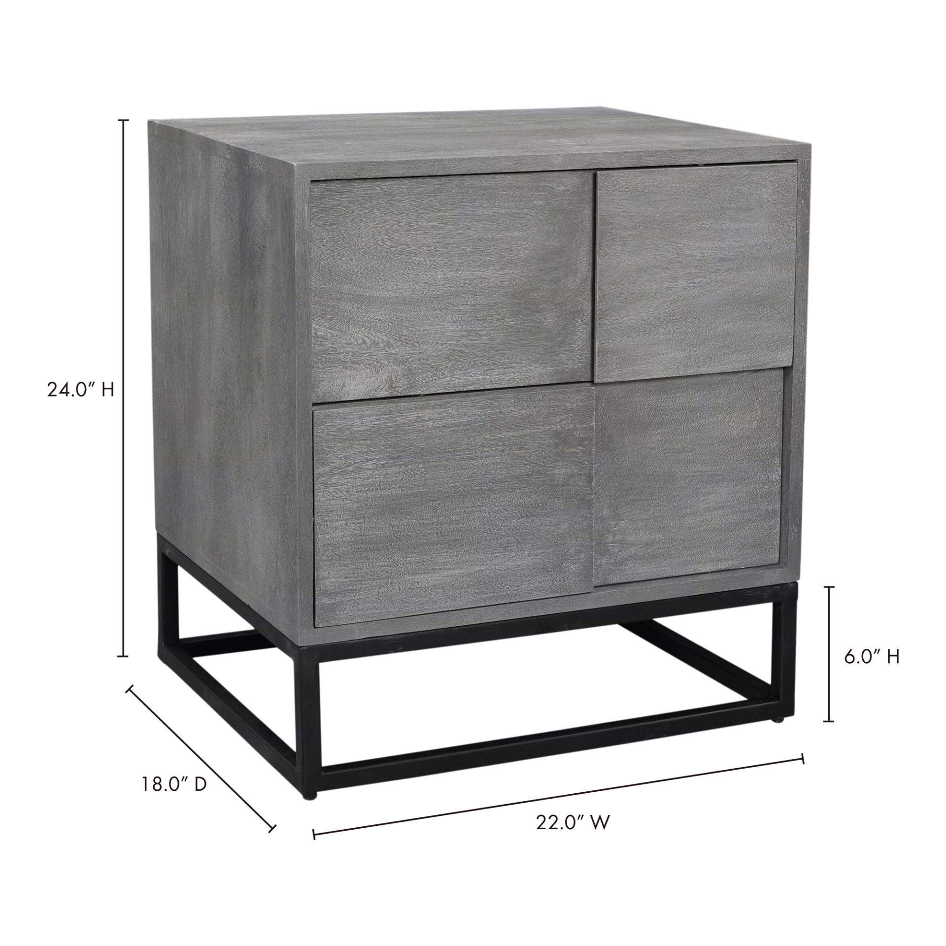The perfect marriage of modern and industrial design. The Felix nightstand is made from solid acacia wood and set on a powder coated iron frame making it durable and long-lasting. Its two spacious drawers provide ample storage and its sleek cubism-inspired fronts will keep your space modern.