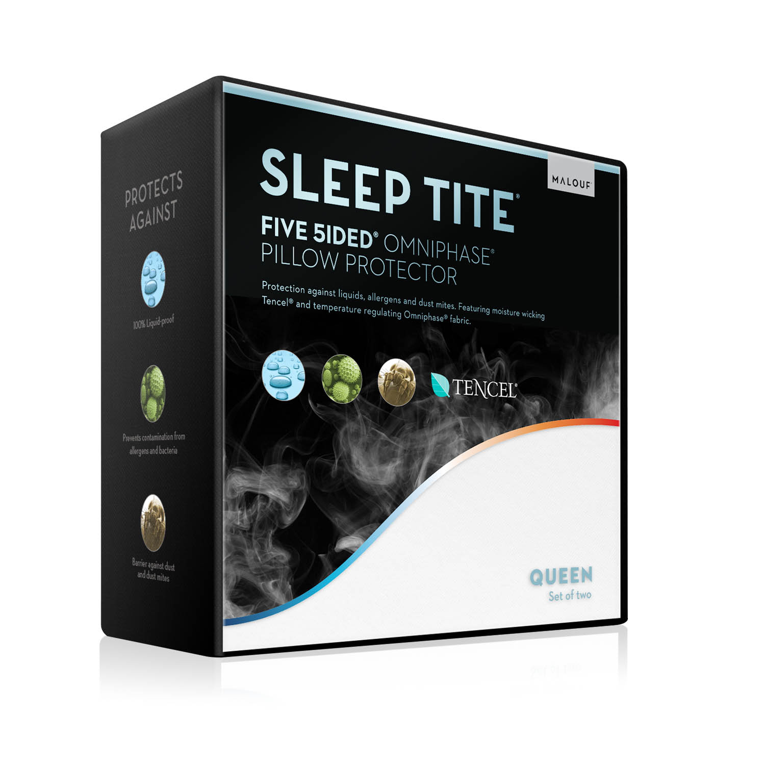 The Five 5ided® Mattress Protector with Tencel® + Omniphase® is the most advanced mattress protector on the market with three incorporated technologies—Tencel®, Omniphase®, and the H2Pro® membrane. Omniphase® phase change material promotes a comfortable sleeping temperature in any climate; Tencel® fiber wicks away moisture from the body and the laboratory-certified H2Pro® liquid-proof membrane creates a quiet, and breathable barrier against allergens and dust mites. The combined benefits of these technologies means you will sleep comfortably and dry with five sides of protection for your mattress. Pillow protectors are also available to create a healthy sleeping environment.