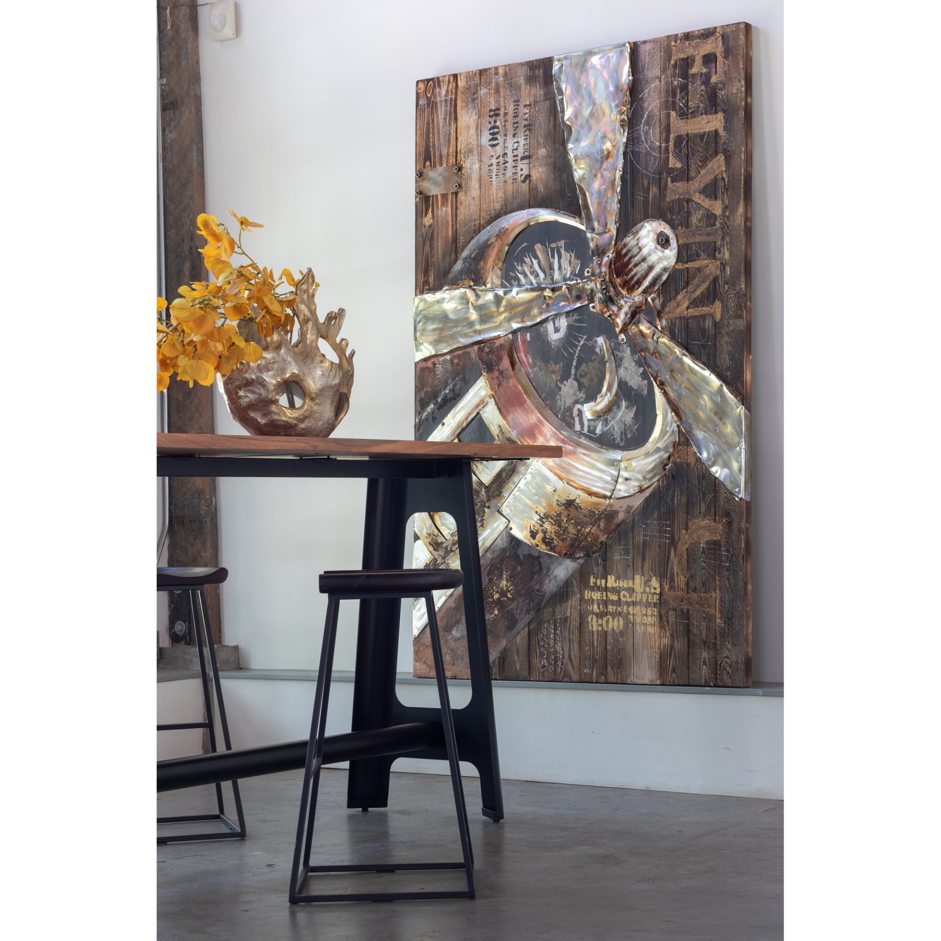 Give your walls a splash of the vintage old world with this abstract image that fits seamlessly into any décor. The hand-painted design makes for genuine work of art. Embellished with metal for an authentic airplane look, its large size will give an eye-catching impact to your home’s decor.