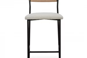 Crafted with an exquisite mix of materials, the Foley counter stool effortlessly merges rustic allure with contemporary grace. Its slender metal frame supports an easy-to-maintain seat upholstered in sumptuous bouclé Performance fabric, while the curved paper rope back evokes an essence of tranquility and warmth, offering a compelling invitation to linger.