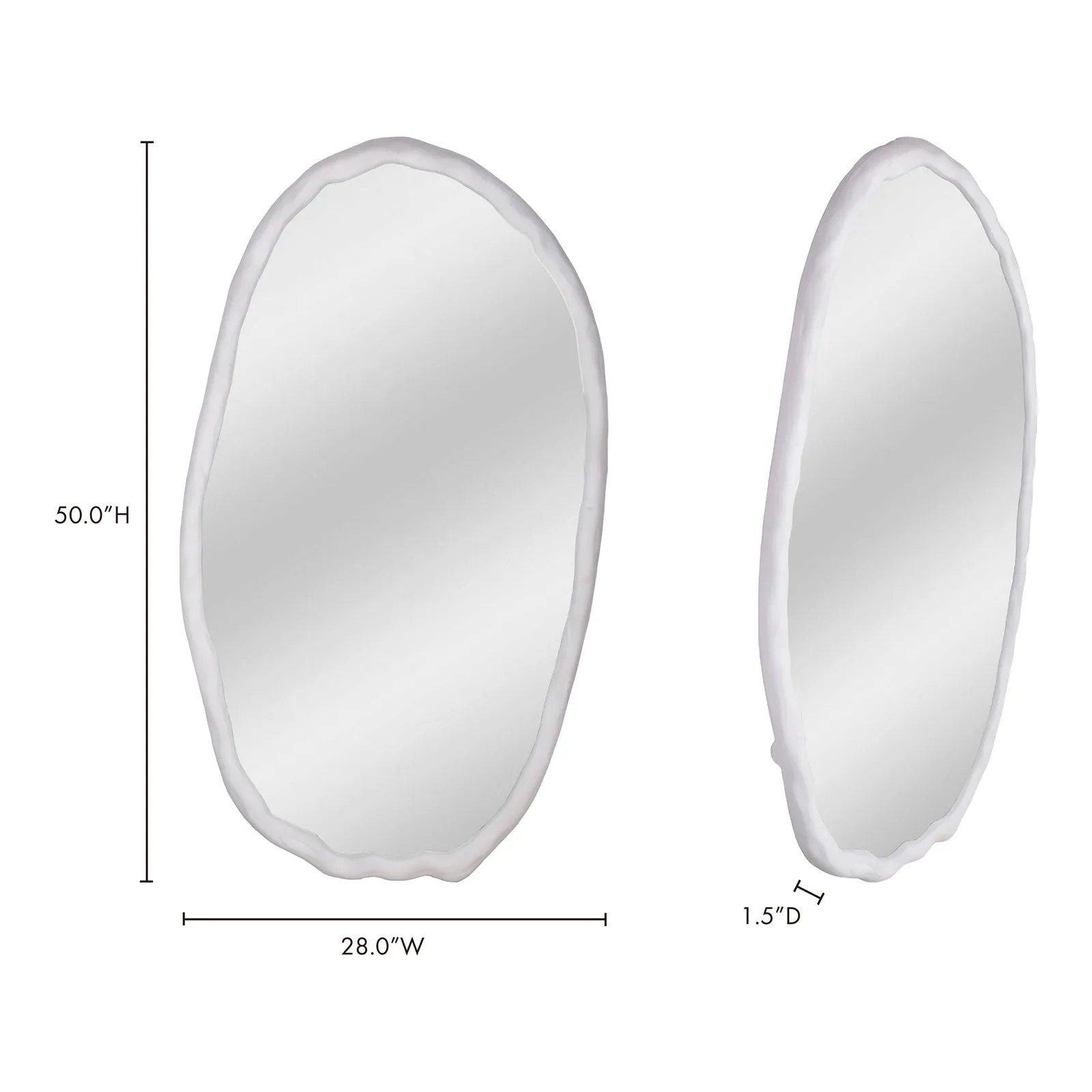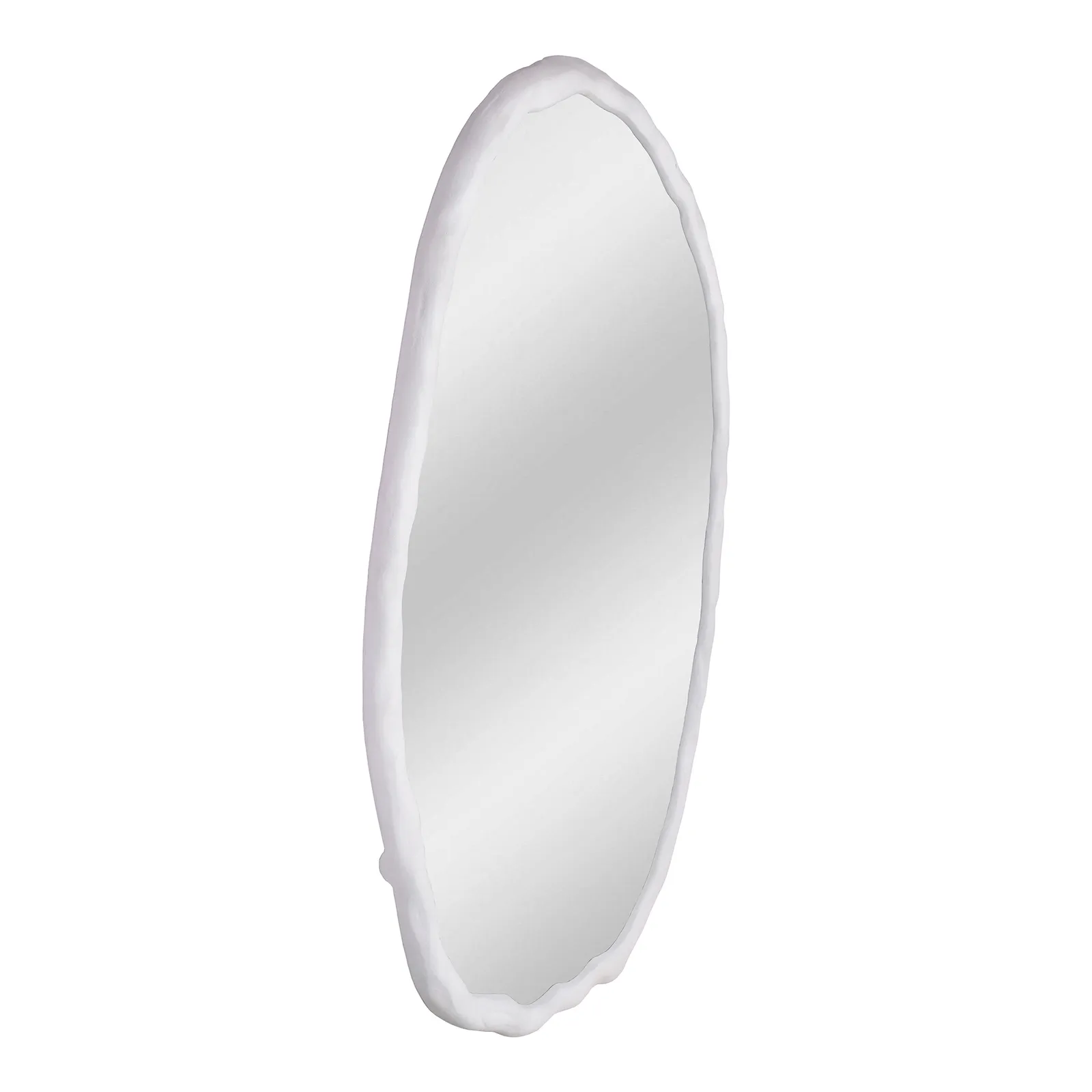 Amp up those positive reflections with this white beauty. The Foundry oval wall mirror will hang centerfold wherever you’ve been looking the most. Mirrors brighten up your space in an instant, and this one hangs easily in a lighter-weight aluminum frame. Artfully rustic with an organic touch to its wood-like design.