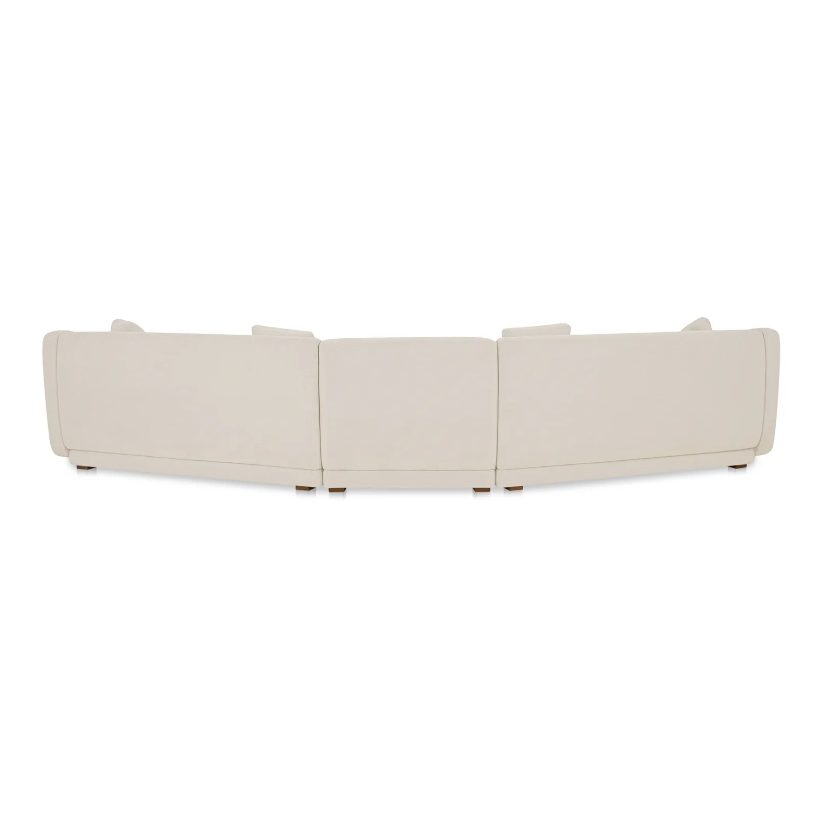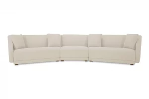 The Fraser sectional’s contemporary modular design infuses the elegance of gentle slopes with linear precision, harmoniously merging soft curves and angular forms into its 60s and 70s-inspired aesthetic. Crafted on a minimalist plinth base and upholstered in sumptuous 100% polyester, foam and fiber seating invites serene repose.