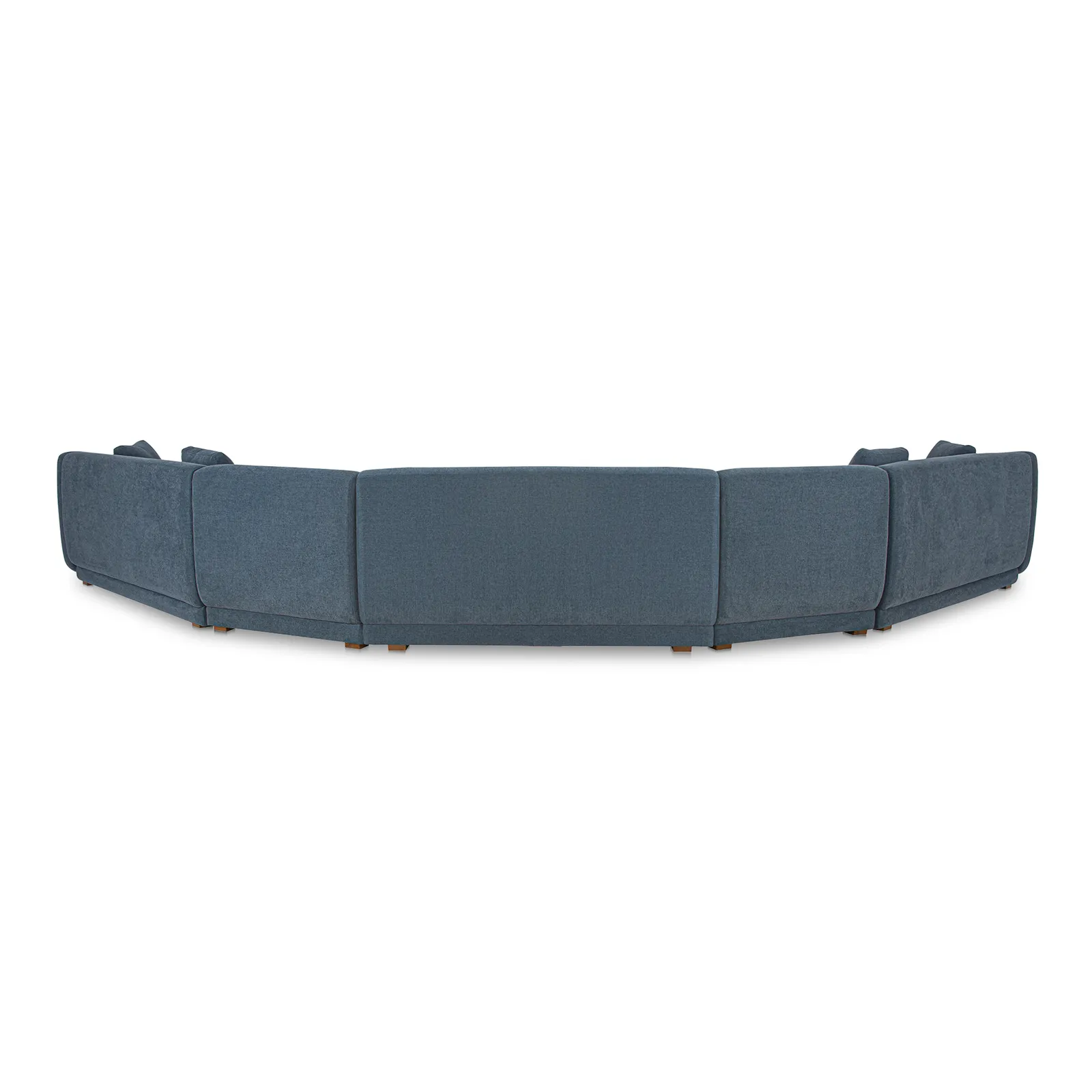 The Fraser sectional’s contemporary modular design infuses the elegance of gentle slopes with linear precision, harmoniously merging soft curves and angular forms into its 60s and 70s-inspired aesthetic. Crafted on a minimalist plinth base and upholstered in sumptuous 100% polyester, foam and fiber seating invites serene repose.
