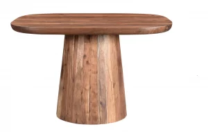 Striking in its simplicity, the Freed dining table is a natural beauty in solid Acacia wood. A bold silhouette expresses its modern rustic style in an oversized drum-shaped pedestal base with a tapered tabletop edge. Perfectly suited for intimate gatherings, enliven each dining experience with this stately design.