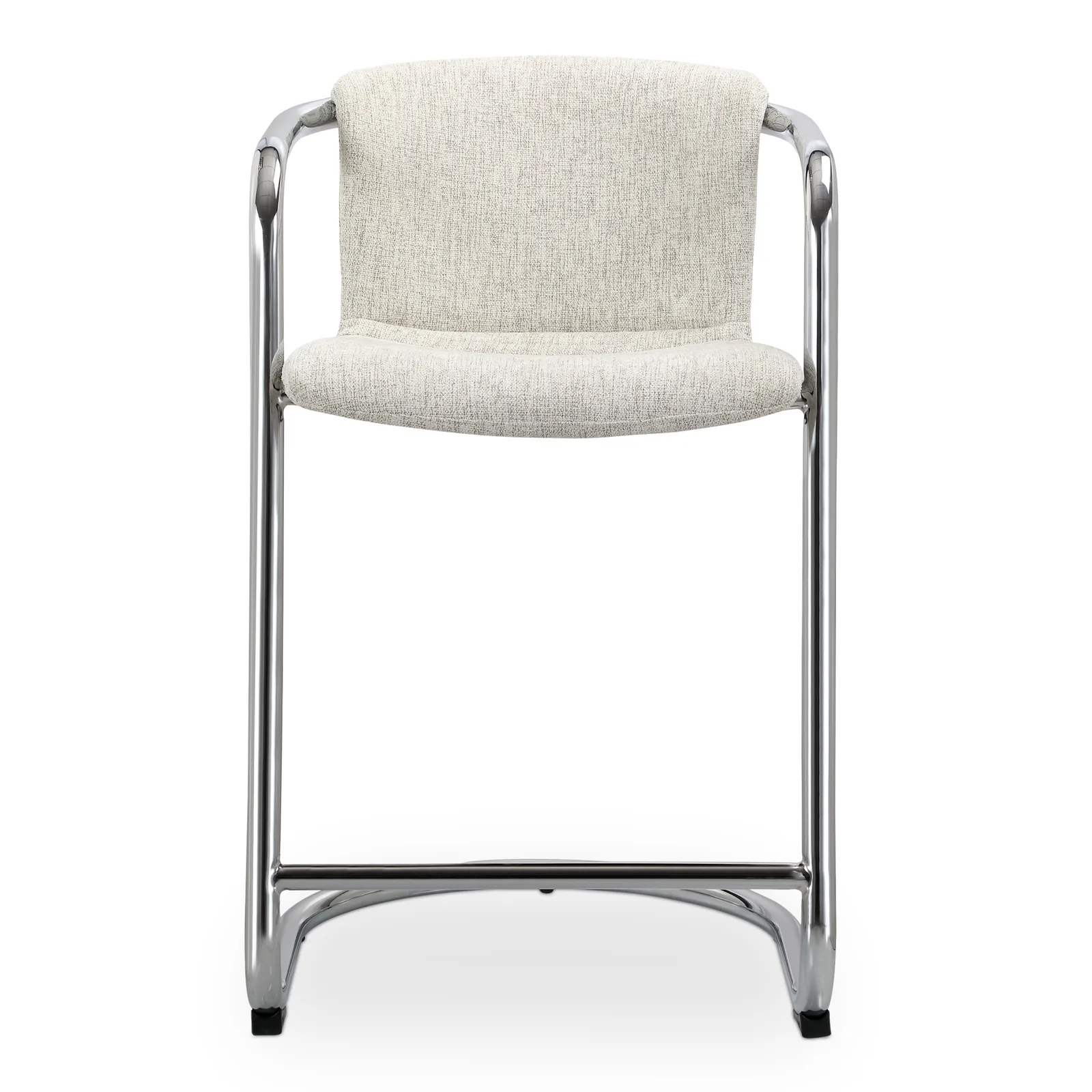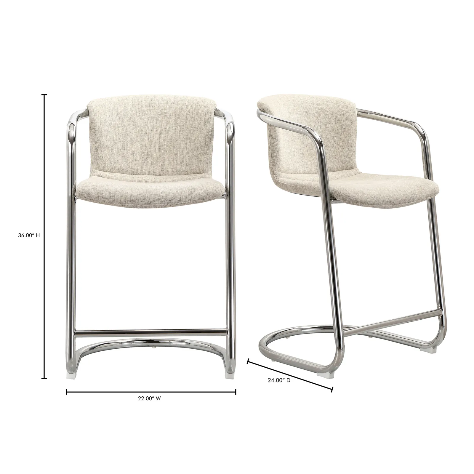 The Freeman chrome counter stool is a look through the lens of taste—a testament to confidence, warmth and passion. Its modern industrial aesthetic unites the luxurious sophistication of easy-to-clean fabric upholstery with sleek industrial chrome iron framing for a look that is both refreshed and retro.