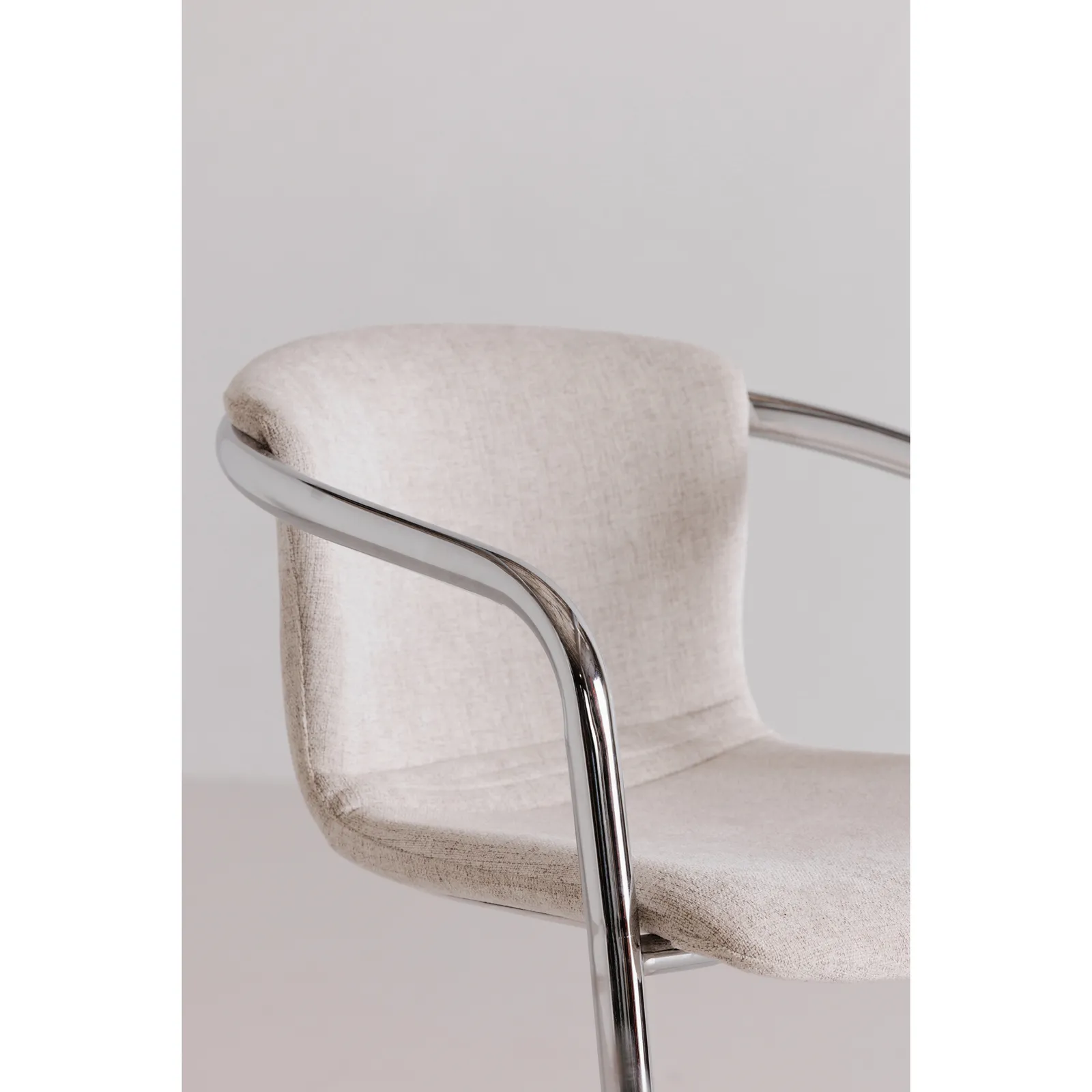 Easy-to-clean fabric upholstery with sleek industrial chrome iron frame