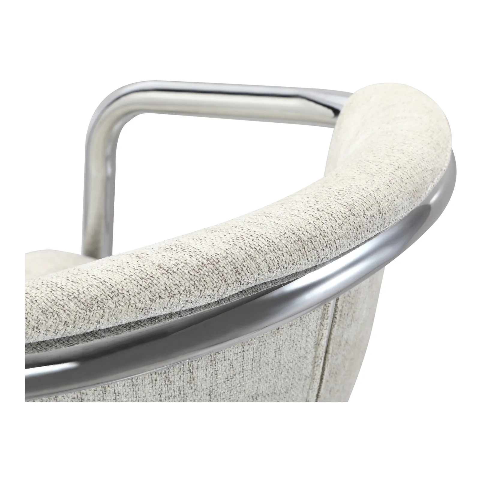 Easy-to-clean fabric upholstery with sleek industrial chrome iron frame