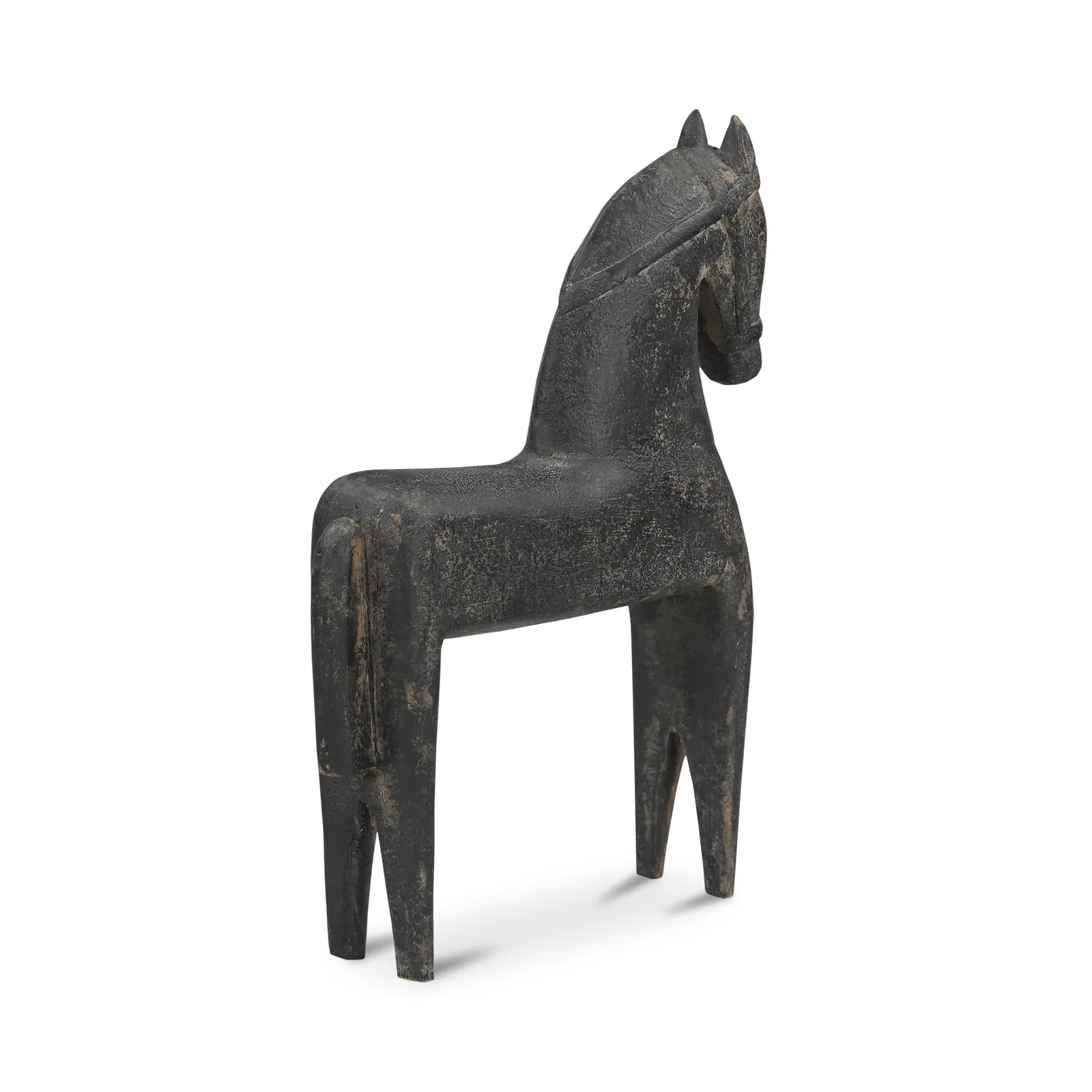 Handcrafted from solid mango wood, the Gallant wooden sculpture is uniquely finished with a burned, charred layer, resulting in an exquisitely aged, patinaed finish. The deep black hue adds dramatic presence to any interior, while its weathered appearance speaks to enduring heirloom quality.
