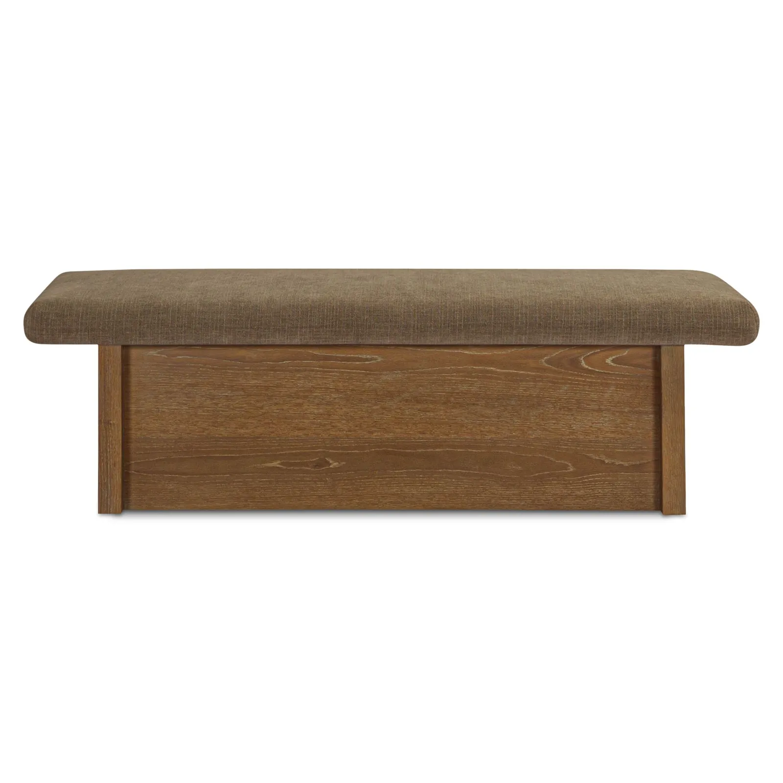 The Gemma storage bench marries contemporary elegance with versatile, functional design. Its generous, deep-seated top is wrapped in a soft, muted chenille, that effortlessly transitions the bench from entryway statement to sophisticated coffee table or seating at the foot of a bed. The recessed wooden base invites functional repose as a sleek wire-brushed drawer offers ample storage.