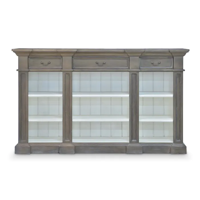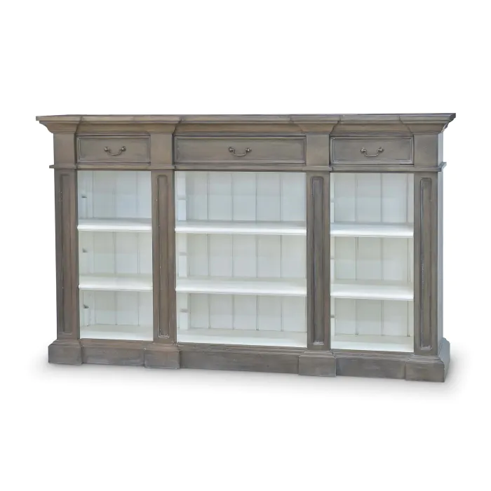 Enjoy sophisticated design details and an impressive profile in this solid mahogany Genoa Open Bookcase. Blessed with ample space for displaying books and media, its trio of pullout drawers also provide hidden storage. This piece is offered with a vast array of finish and distress options to create a truly custom design.