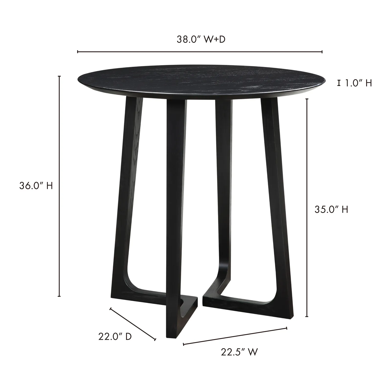 Discover sculptural kitchen and dining design with the Godenza collection. A contemporary take on a mid-century modern classic, the Godenza round counter table is constructed from solid ash with a black, semi-gloss finish. With a look that will last a lifetime, this counter-height table features a uniquely shaped base that lends a more refined, sculptural feel—an ideal design for smaller kitchens or dining rooms.