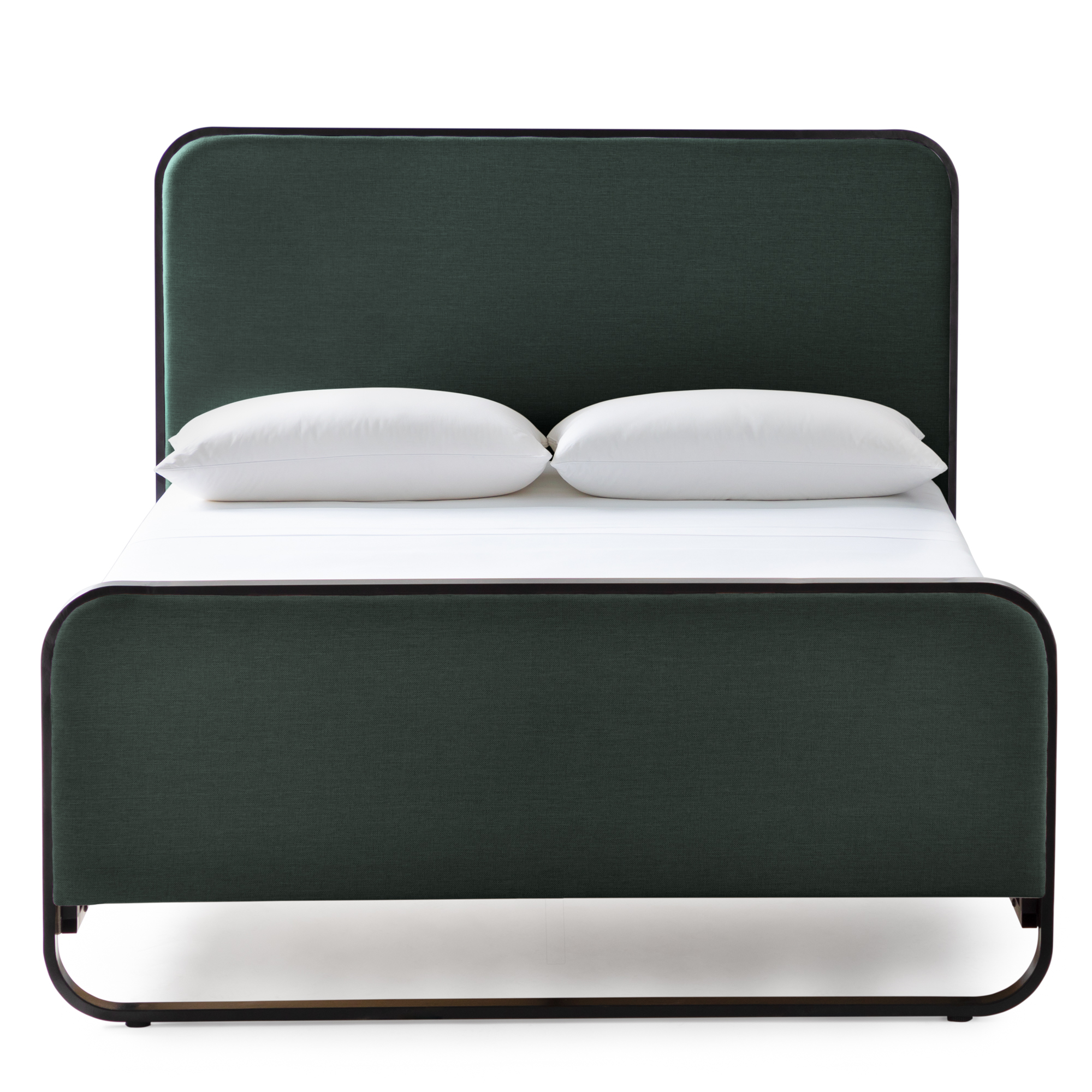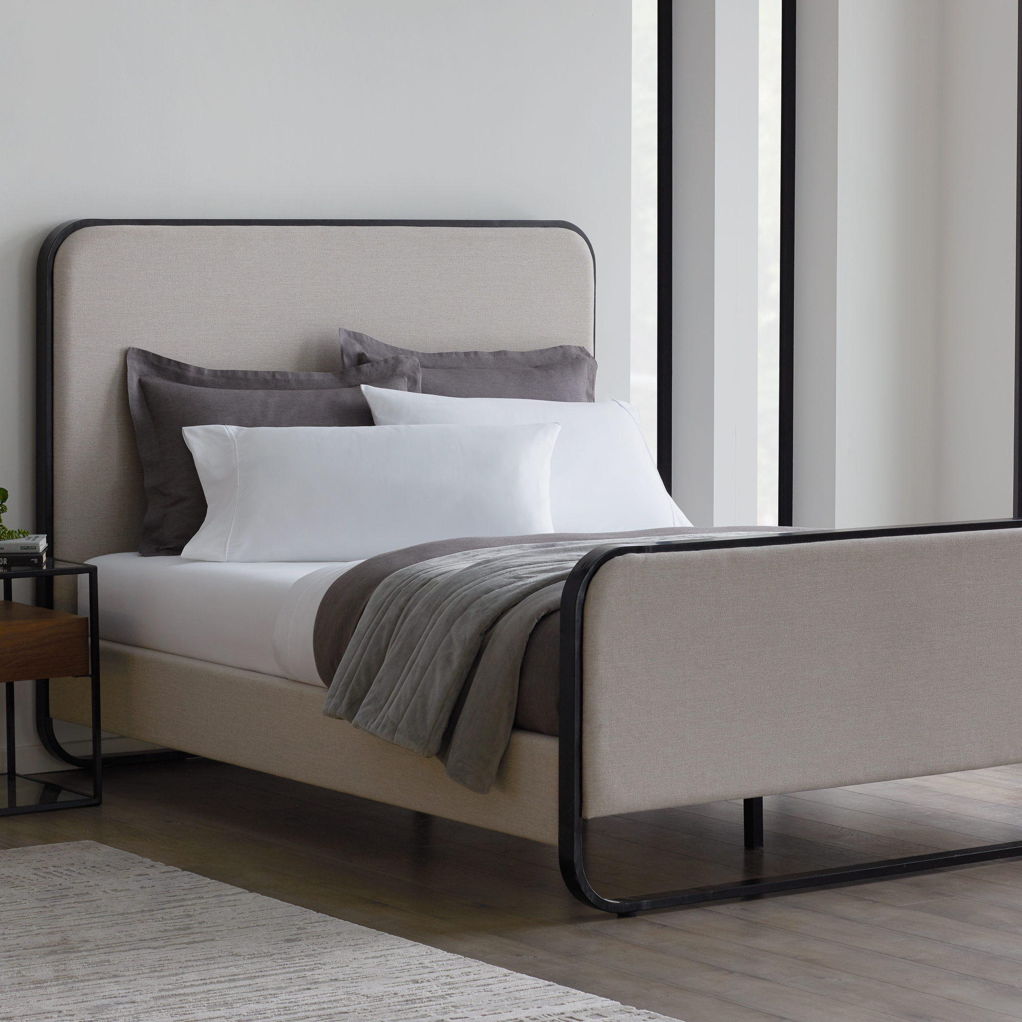 The interior design team at Malouf created a designer bed set so you can have superior style without any of the work. The Godfrey Bed was inspired by the sleek design of the 1960s and influenced by mid-century modern aesthetics such as rounded corners and continuous lines. The frame is constructed with steel for durability and support. You just choose your size and color to create the perfect accent for your bedroom. The Godfrey comes in five uniquely textured colors: Oat, Spruce, Charcoal, Stone, and Desert. Your purchase is protected by a 15-year warranty, which ensures high-quality construction.