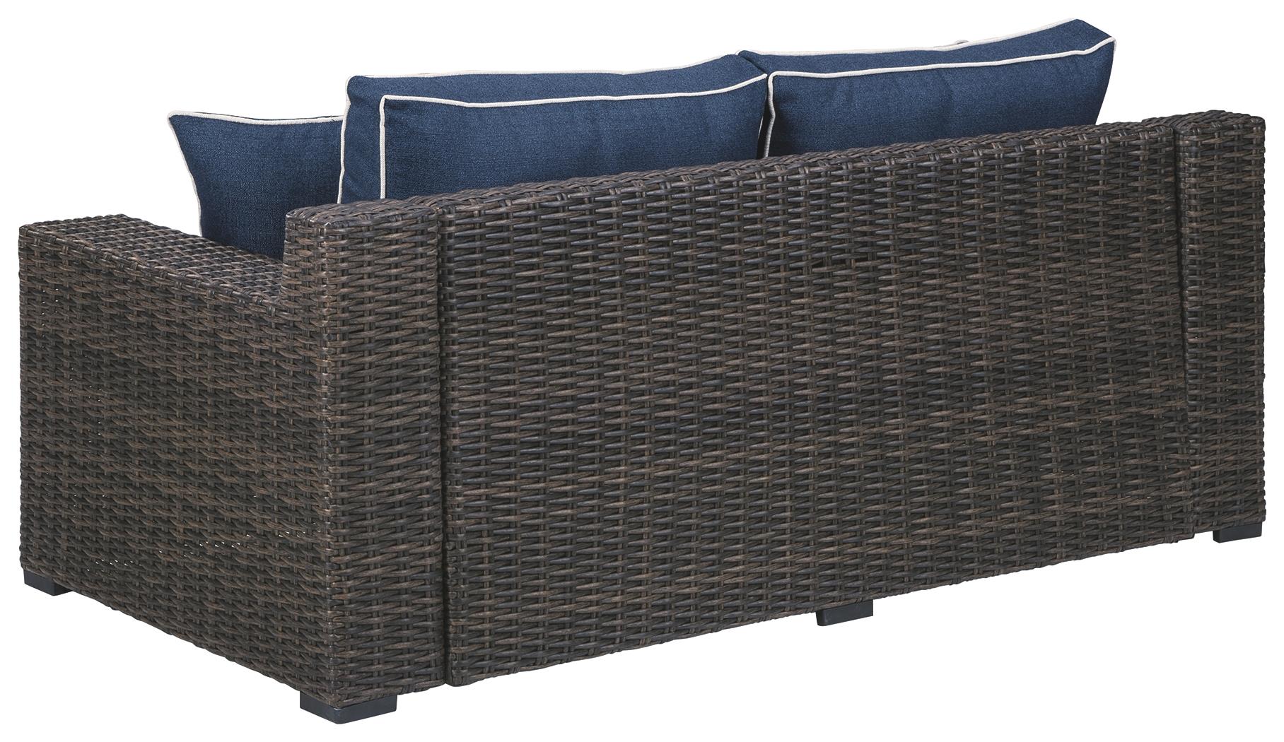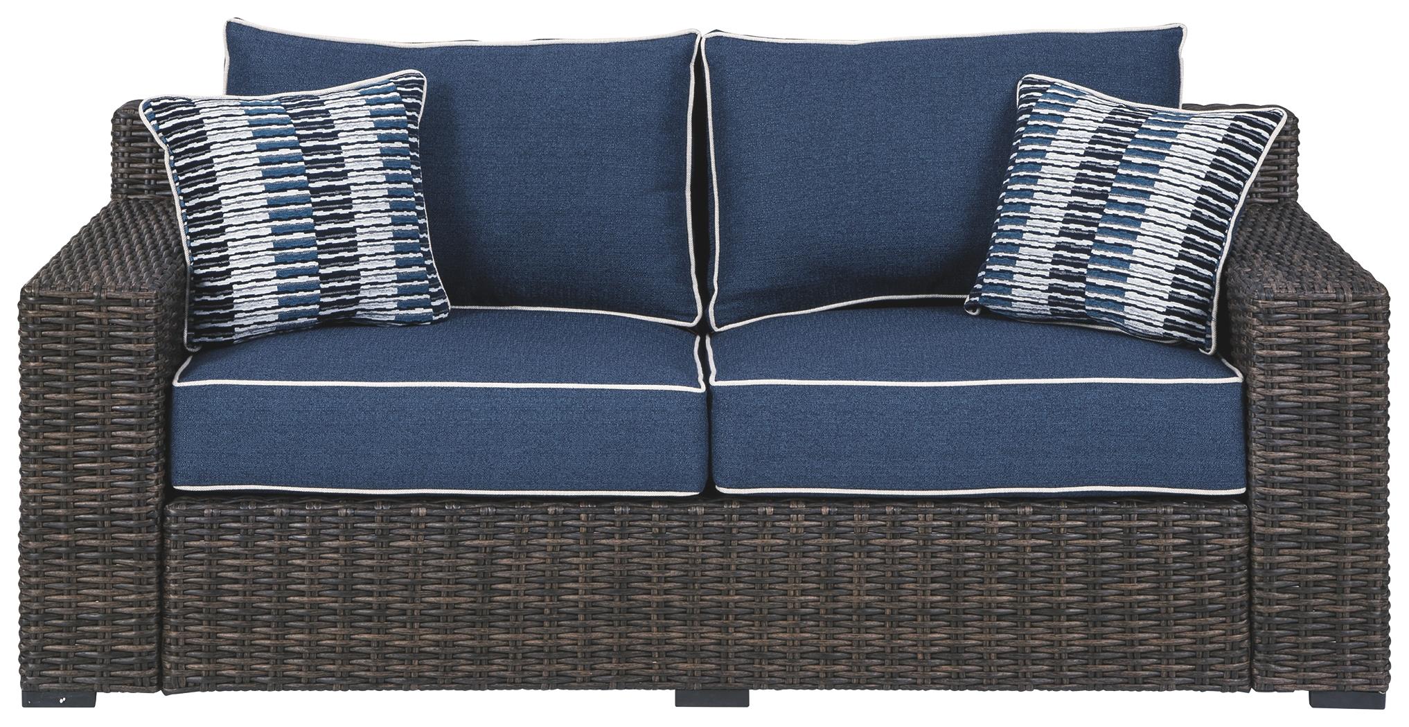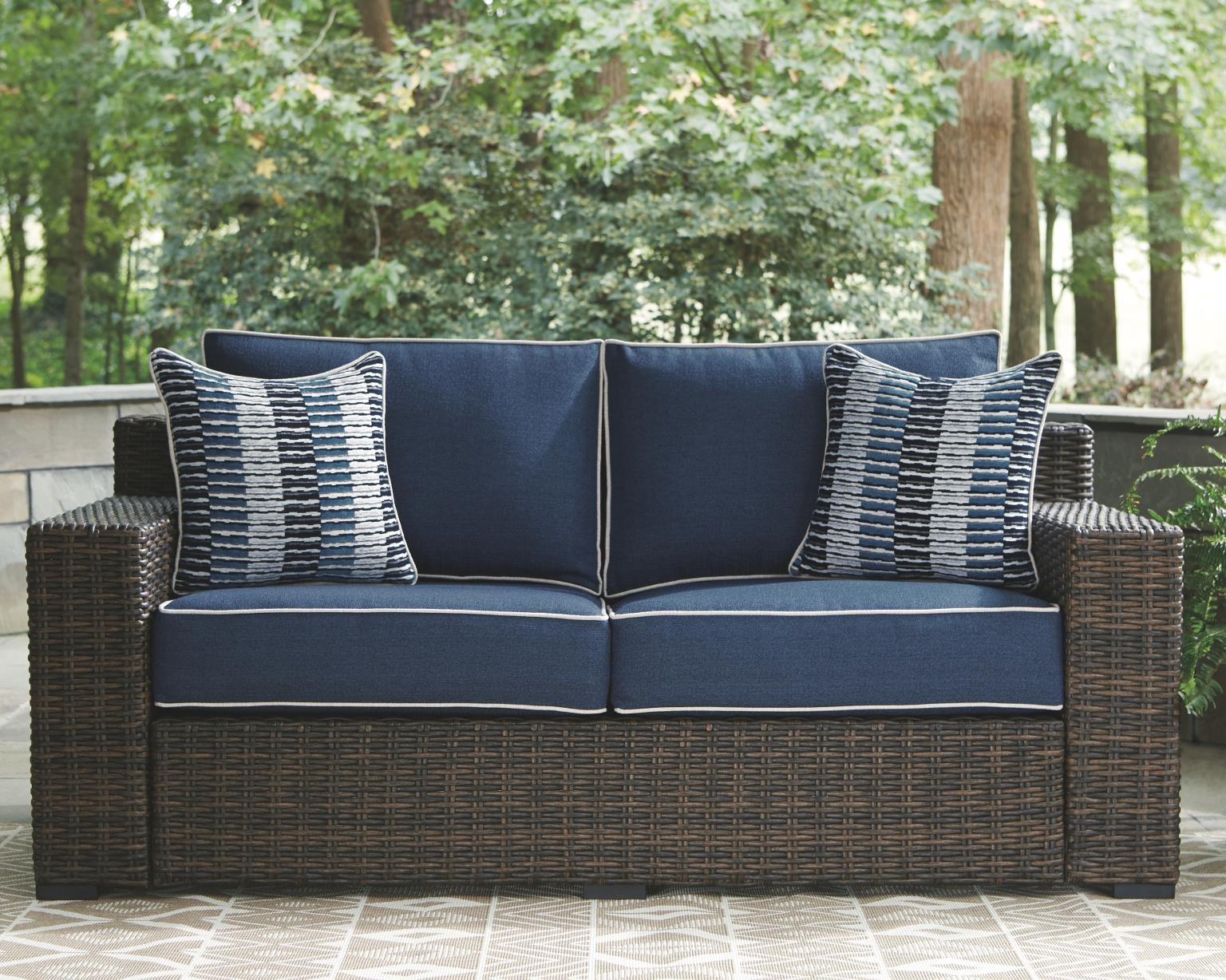 Style. Comfort. Quality. Value. This loveseat with cushion really goes to town,,,, giving you the total package for outstanding outdoor living. Crafted to withstand the elements,,,, this outdoor loveseat’s resin wicker base and rust-proof aluminum frame ensure carefree living,,,, while the plush cushion covered in fade-resistant Nuvella® fabric provides stylish appeal. Comfy and casual,,,, it’s perfect for use inside or out.