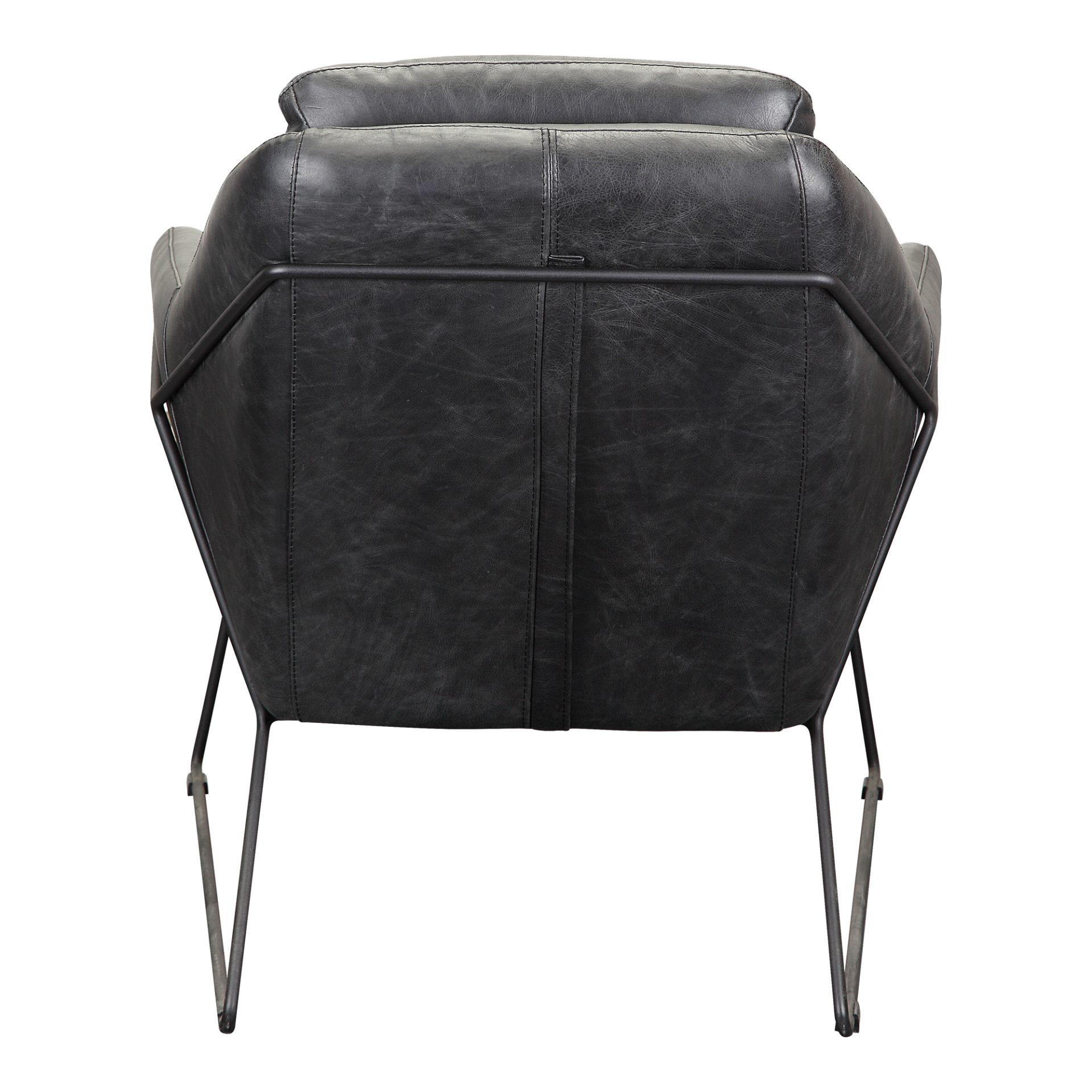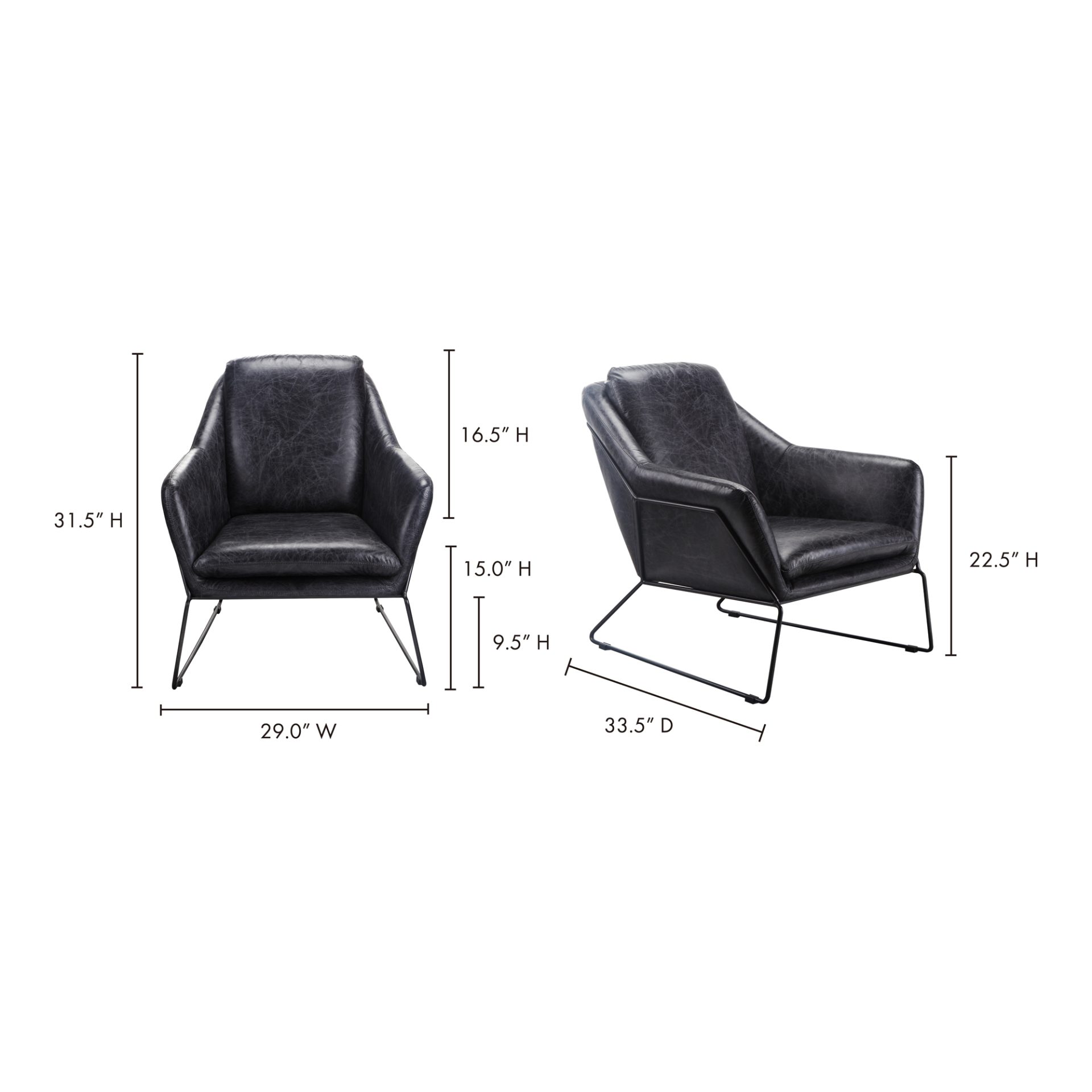 The Greer club chair is a beautiful modern design that will attract the eye with its sleek look. The cushions are made from handsome black leather, and there is a lovely black iron frame that surrounds the chair.