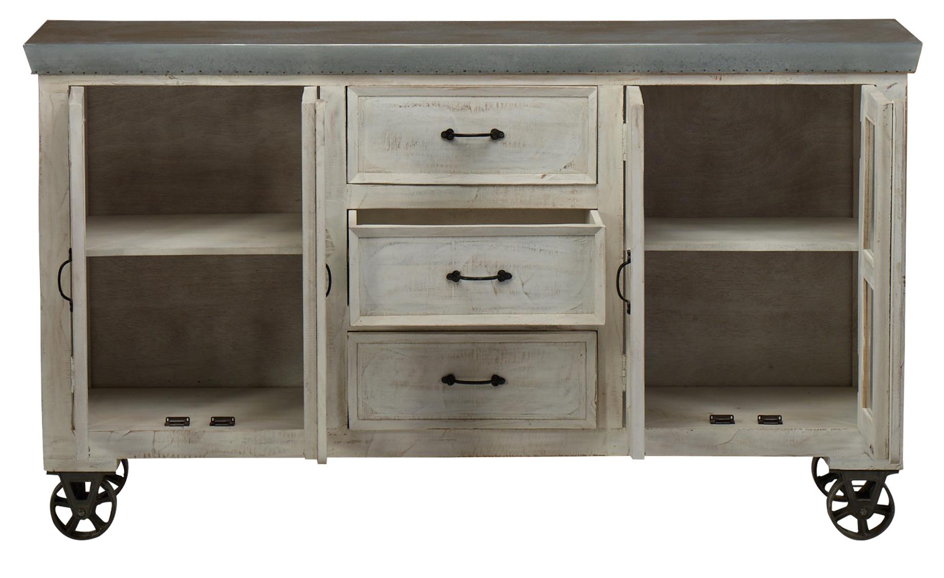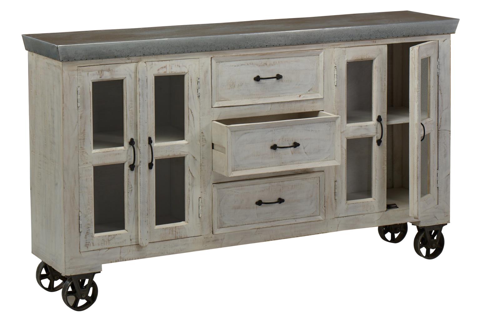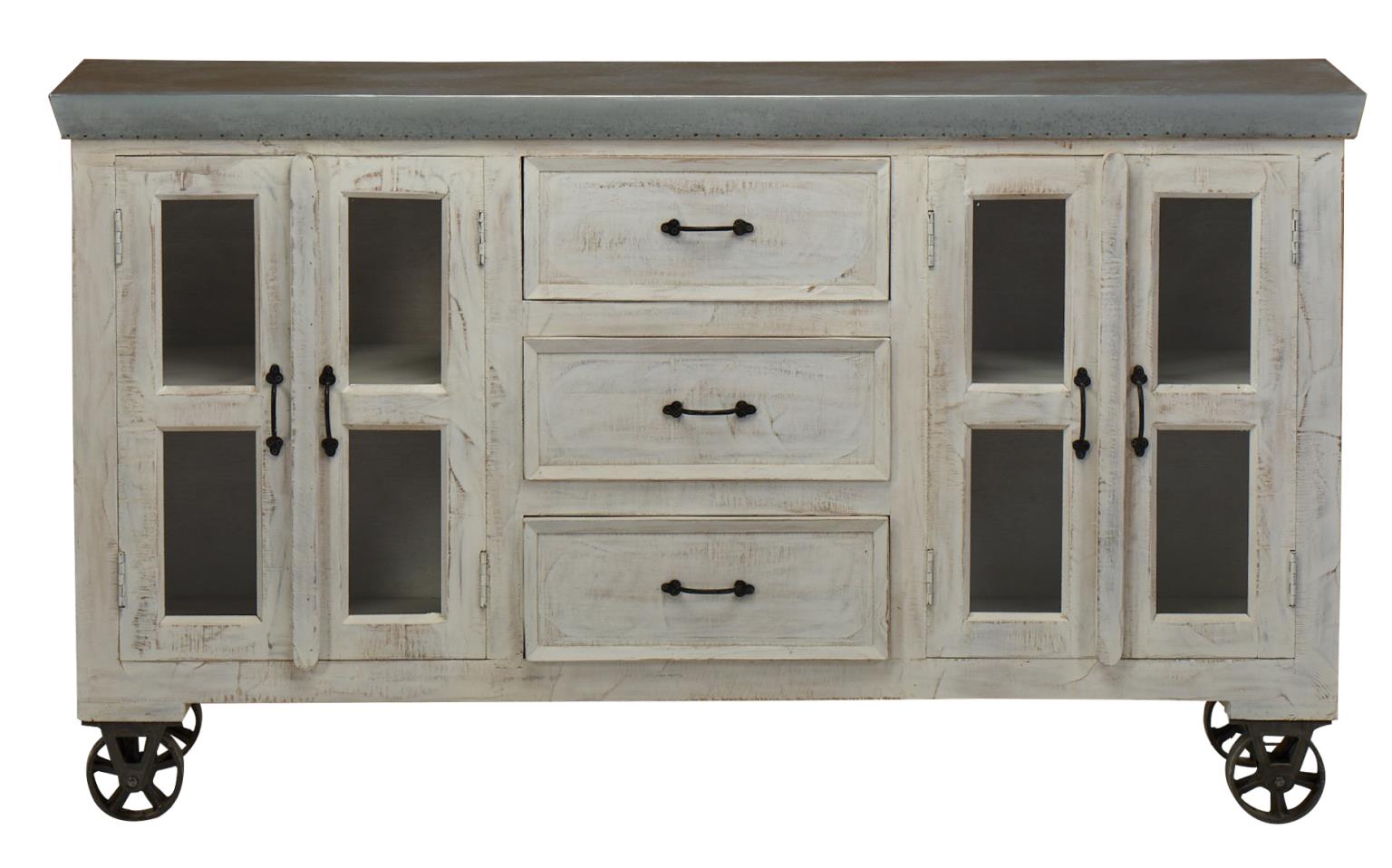 Guru 3 Drawer 8 Glass Galvanized Top Wheeled Sideboard