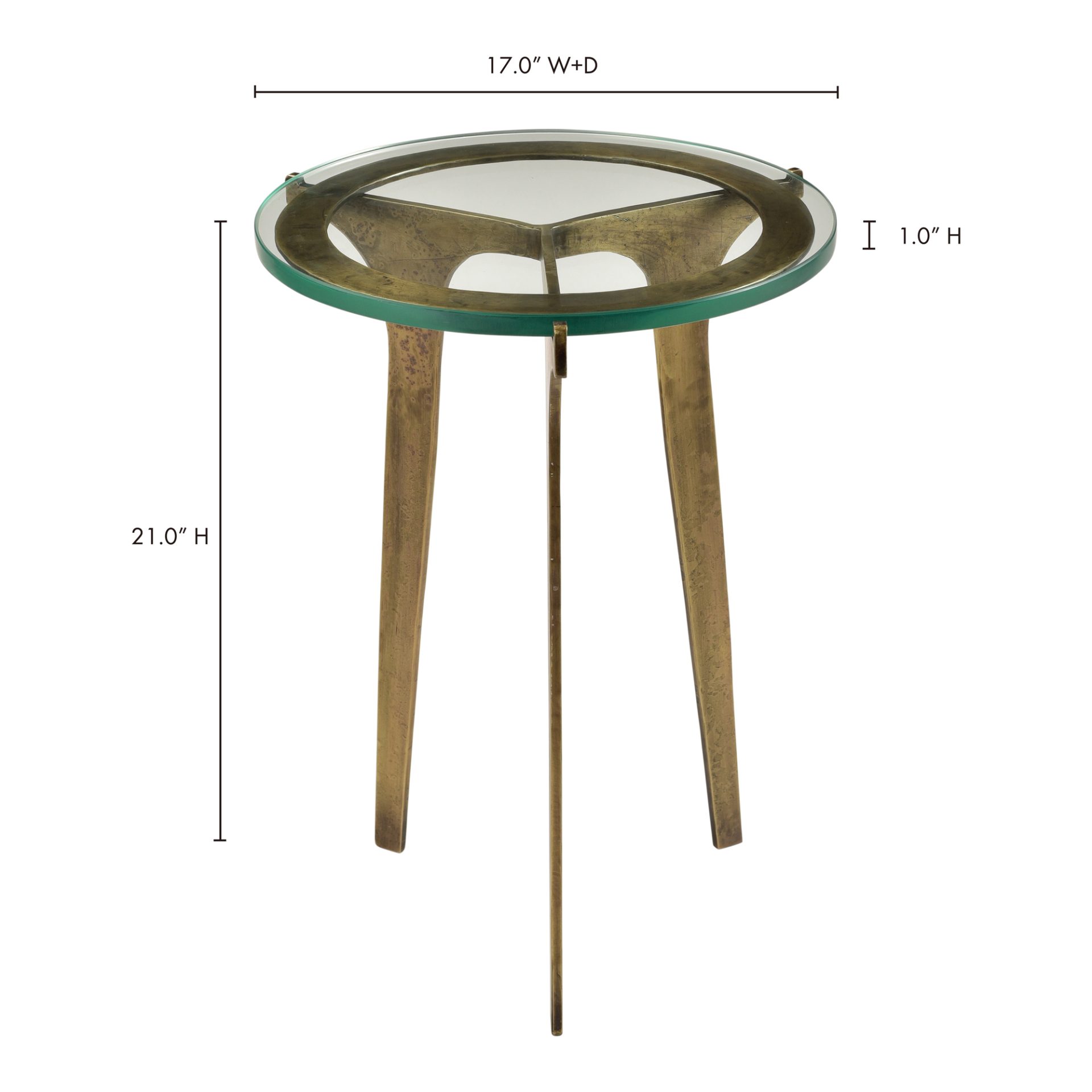 Made in an antique-brass finished iron, the Halvorsen has a glass top that shows off the fresh metalwork of this classy accent table.