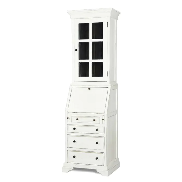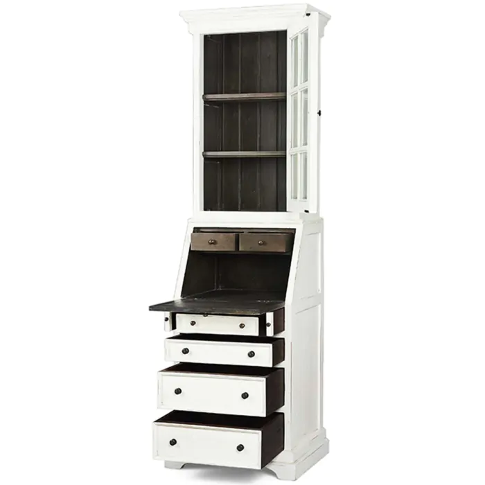 Perfect for a nook in the kitchen or living room, the narrow silhouette of the Hancock Secretary belies its ample functionality. This cabinet features mahogany construction with a drop front that open to create a writing surface accented with plentiful storage. This piece is offered with a vast array of finish and distress options to create a truly custom design.