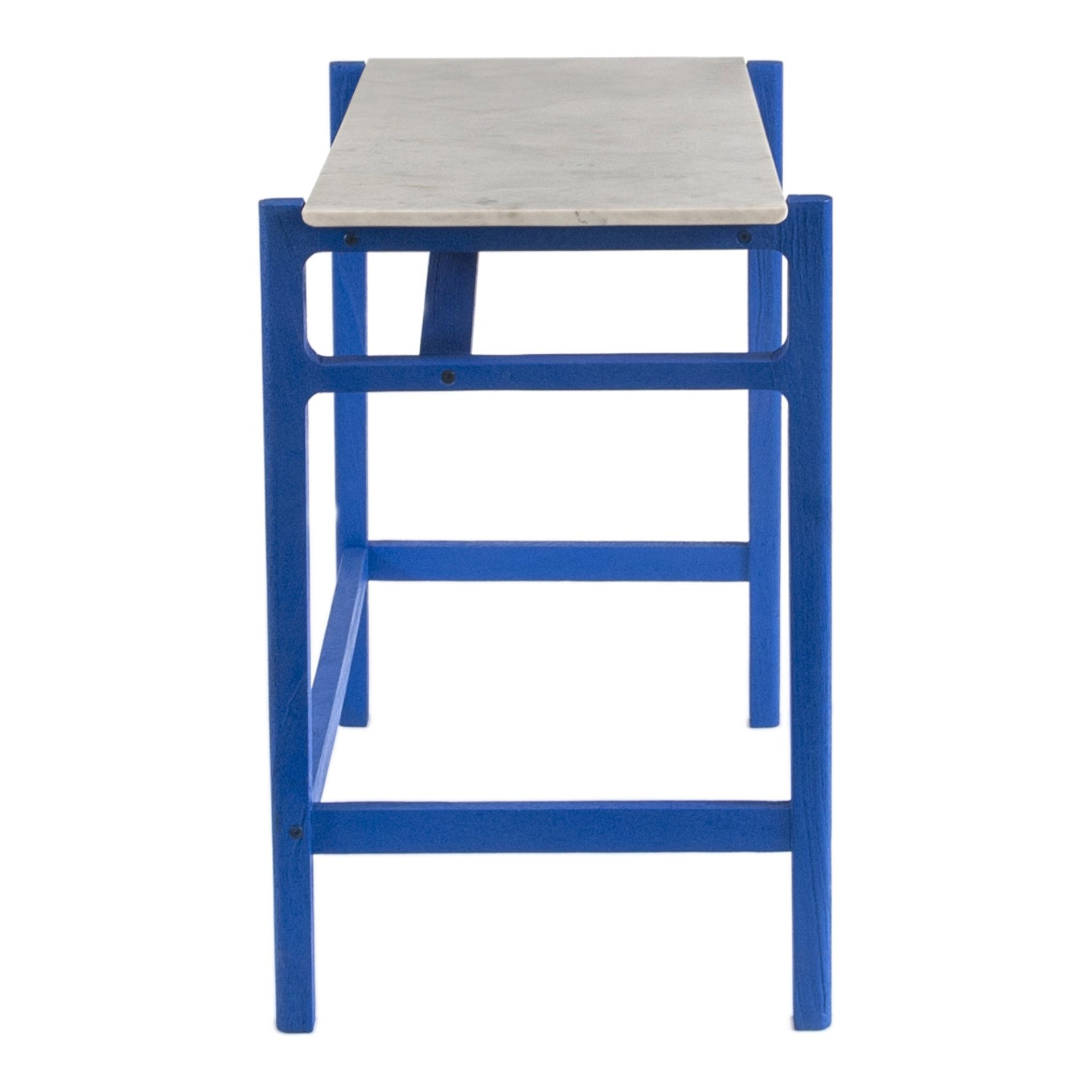 Harboring expression. The simple, elegant design of the Harbor desk allows it to fit perfectly into many living spaces and interior settings. Whether in an entryway as a console table, the living room, or the office, Harbor’s sturdy wooden legs and floating marble top level up this modern room accent. Available in solid Acacia with a natural finish, solid Acacia in a vibrant blue finish, and solid oak, the Harbor desk collection’s design is a lesson in practical function and elemental appeal.
