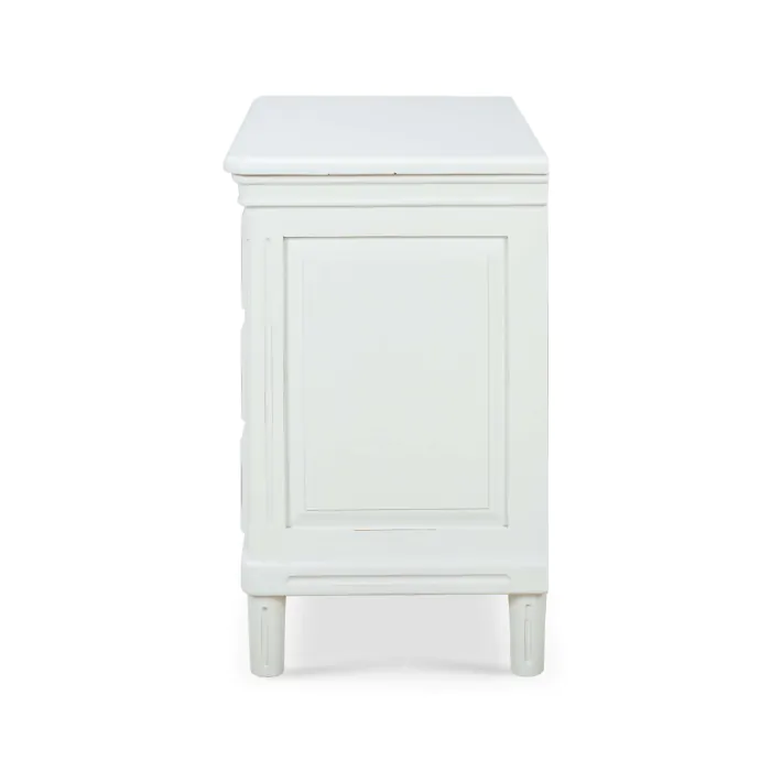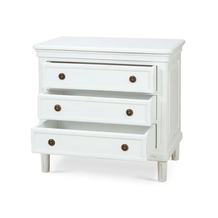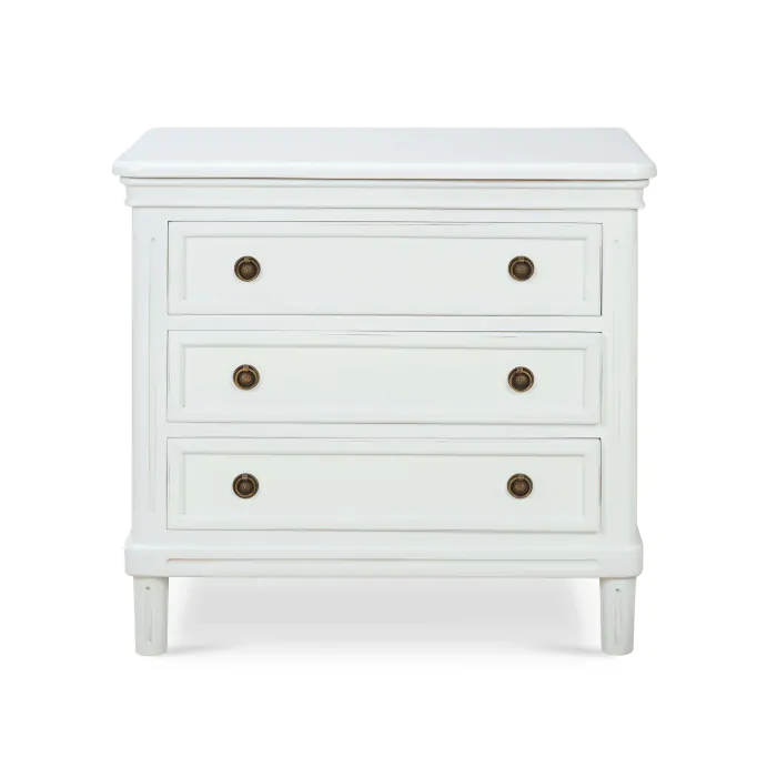 Complement a sofa or accent chair with the ample storage featured in the Hayward Side Table. Offering three drawers and solid mahogany construction, the table is perfect for a casual or transitional living space. This piece is offered with a vast array of finish and distress options to create a truly custom design.Architectural White, Light Distressed