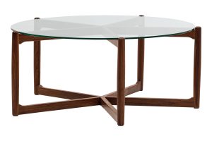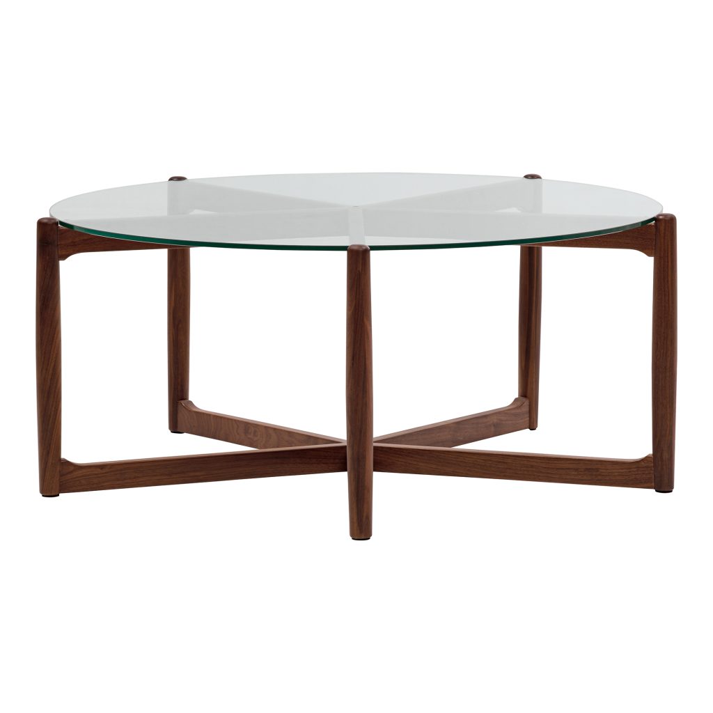 Slender and serene, the Hetta coffee table’s circular shape will create a calming flow in your space. Its five-pointed base made from solid walnut is only the beginning with this beauty, as its subtly sculpted touches rise above the rest. A window into leisurely gatherings, the tempered glass tabletop is a showcase for the detailed woodgrain, as well as a reflective expansion for your space. Pair Hetta with your favorite accent chairs and sofa as a tranquil focal point.