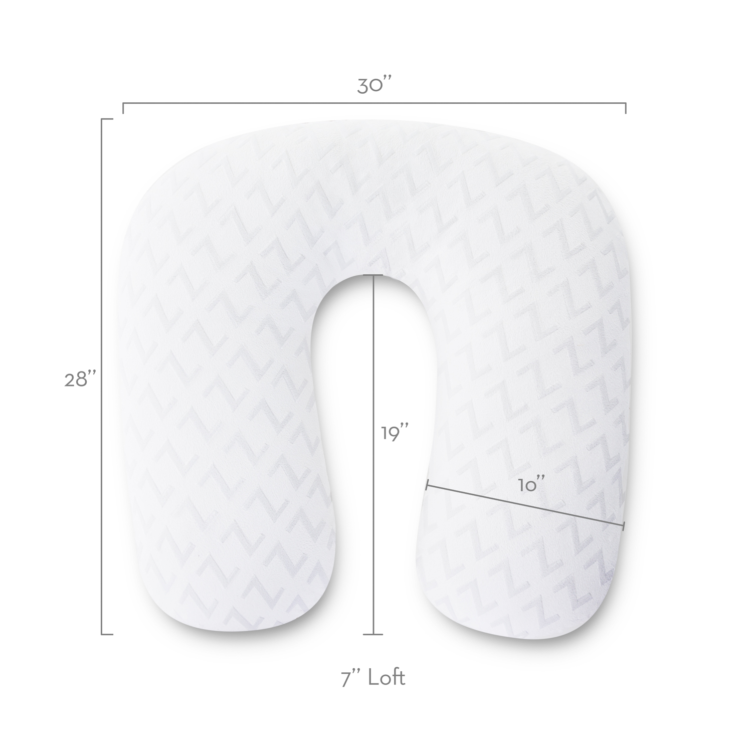 This ergonomic, U-shaped pillow is designed to offer support and relieve sleep discomfort during pregnancy or to be used as a body pillow. The versatile shape wraps around both sides of the body to offer support without extra pillows. Soft down-alternative fill is hypoallergenic and won’t shift or clump.
