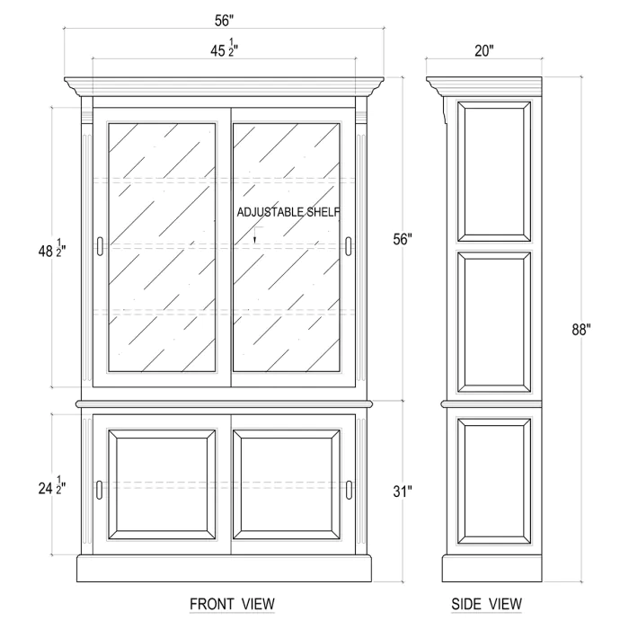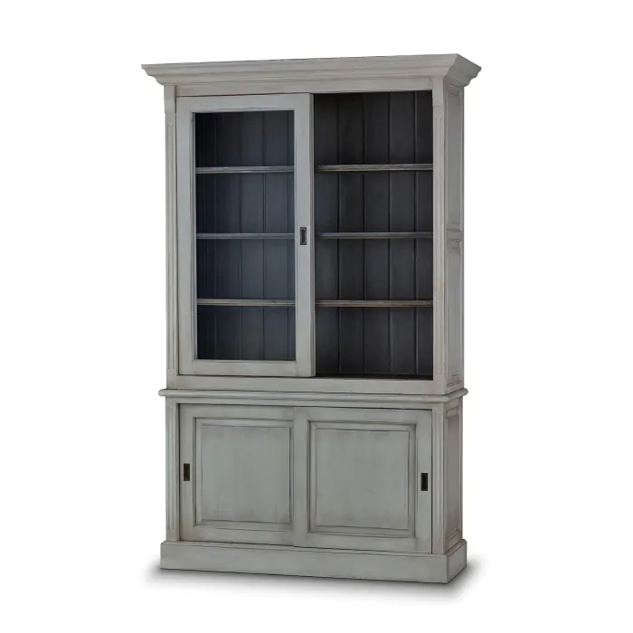 For compact spaces, the Hudson 88″ Bookcase with 2 Sliding Doors brings a generous amount of room for displaying and storage. Built from solid mahogany, it offers sturdiness and exceptional beauty. This piece is offered with a vast array of finish and distress options to create a truly custom design.