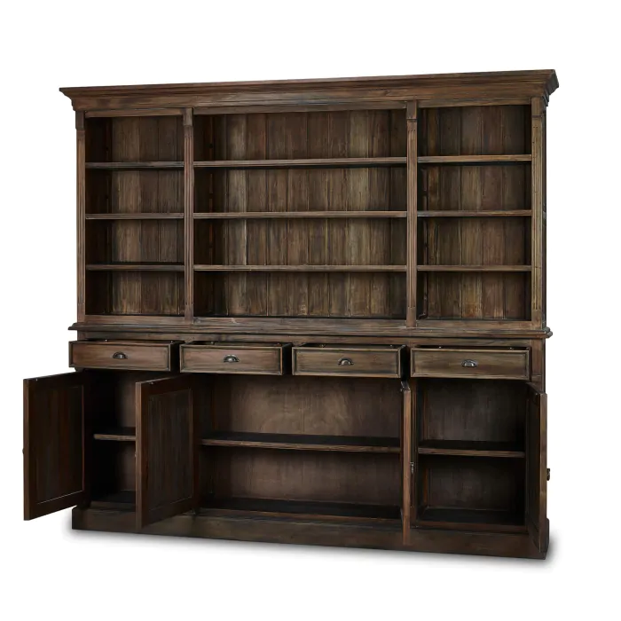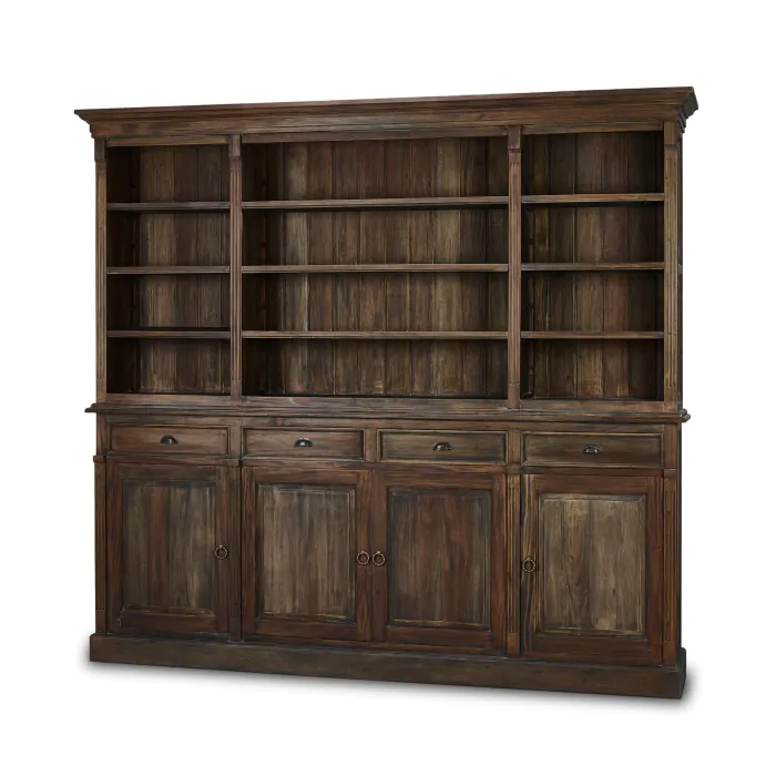 Able to showcase a personal library in elegant style, this debonair Hudson Open Bookcase is perfect for creating a refined aesthetic. Made with premium mahogany wood and designed with spacious shelfing and storage space, this stunning bookcase is sure to add timeless accenting to the room. This piece is offered with a vast array of finish and distress options to create a truly custom design.