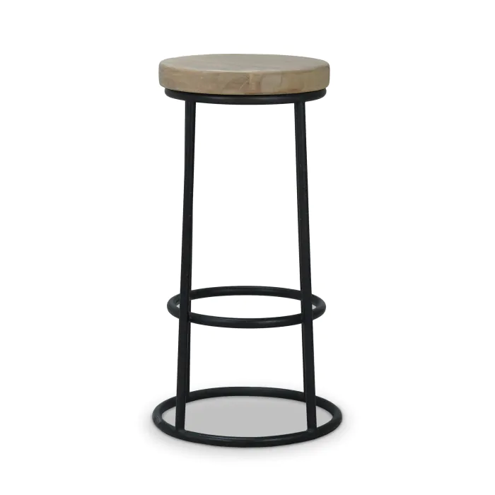 Reflecting a timeless industrial design, the Indigo Bar Stool offers a cool dramatic vibe for a kitchen counter or pub table. Its solid mahogany construction features a double-ring foot rest for extra comfort. This piece is offered with a vast array of finish and distress options to create a truly custom design.Midnight, Gamalina (*can be used on Gmelina Wood only)