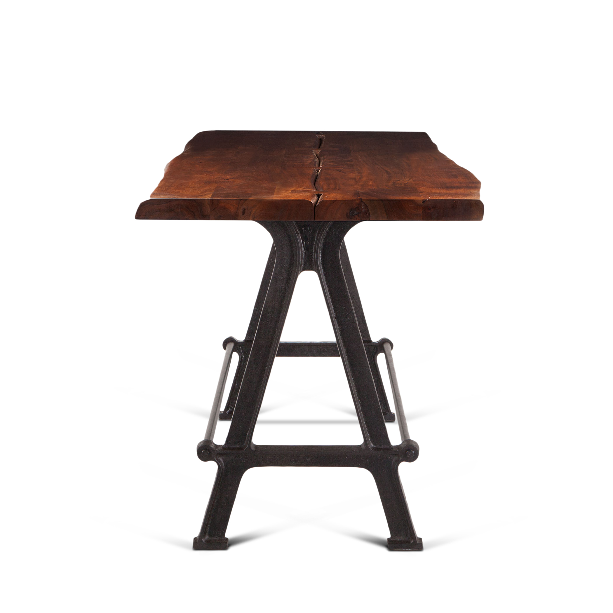 The Industrial Loft 72″ Gathering Table blends rugged materials with a refined silhouette, ideal for contemporary commercial and residential settings. Crafted from solid walnut-stained hardwood and supported by a reclaimed iron base, this table showcases industrial influences through its exposed hardware and durable construction. The generous surface area makes it well-suited for communal dining or collaborative workspaces, offering lasting style and strength.