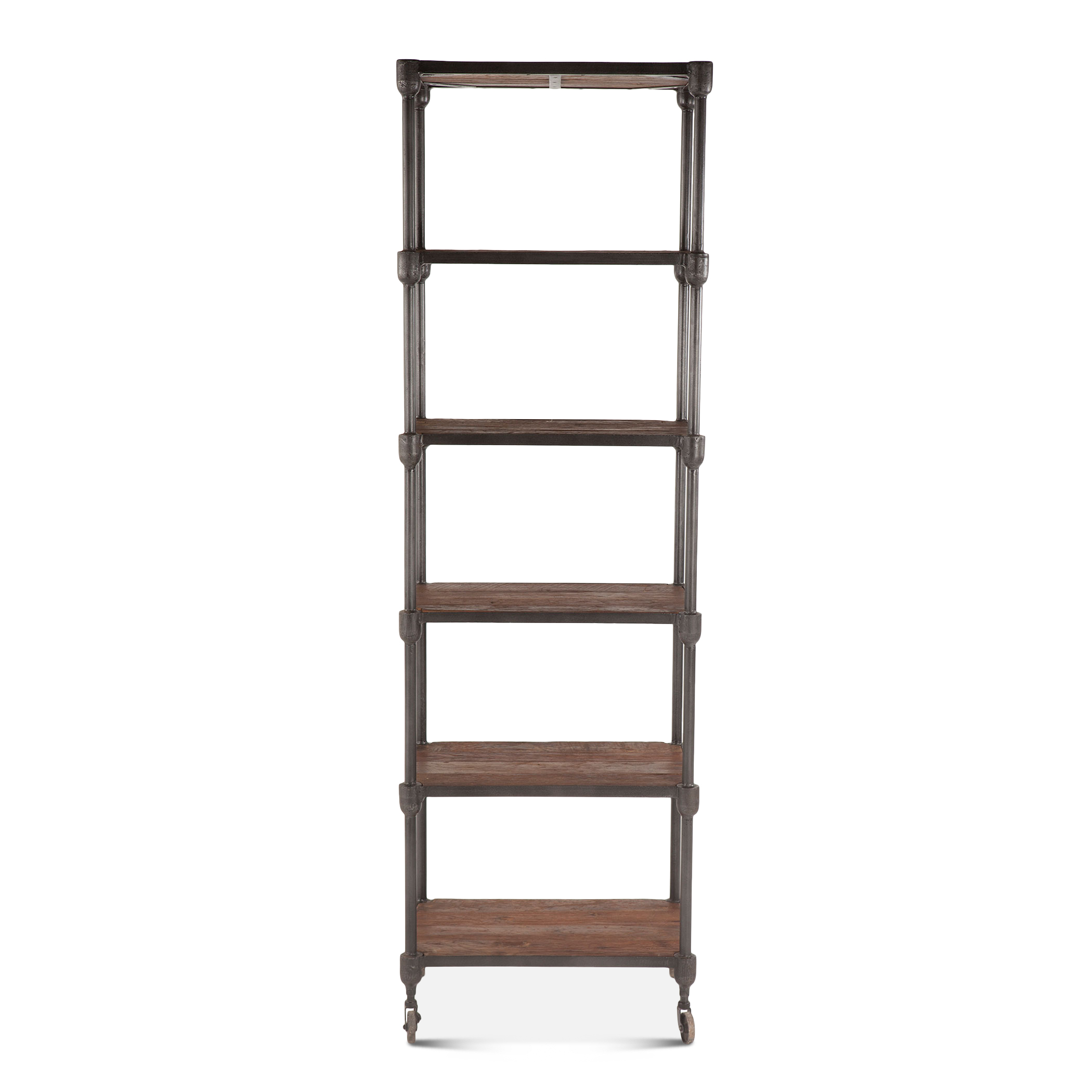 Industrial Teak 80″ Wheeled Bookshelf in Natural Reclaimed Wood