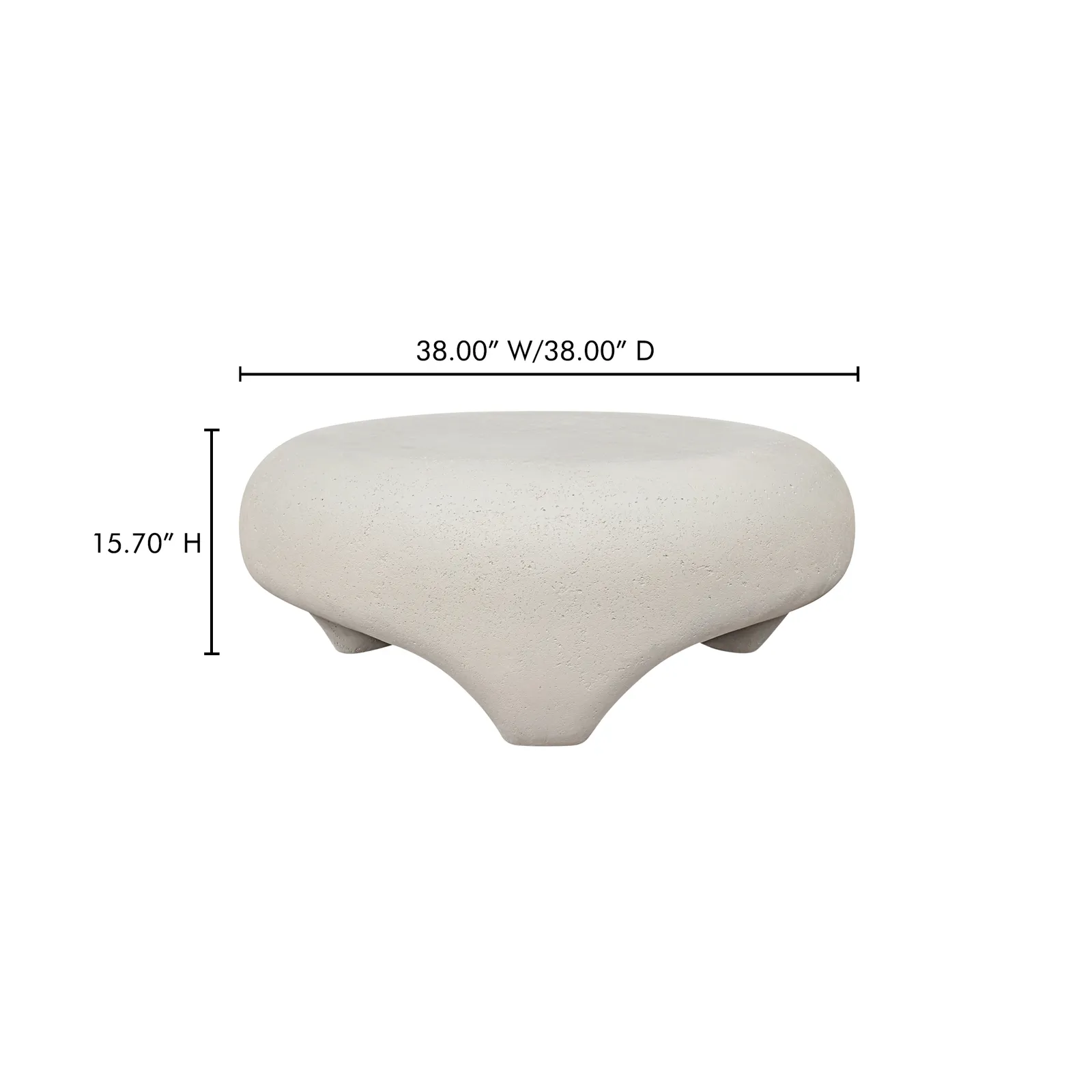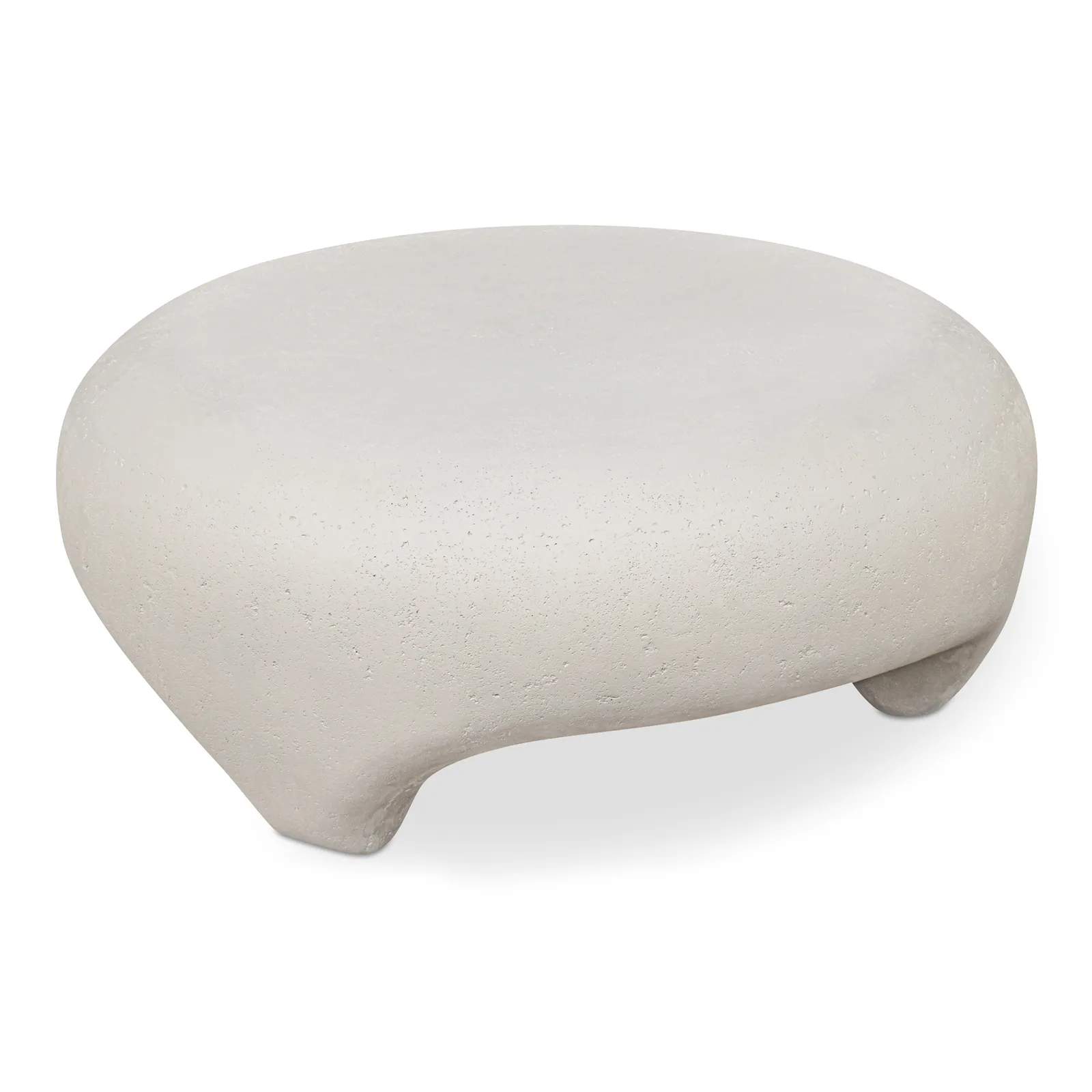 The Ines outdoor coffee table captures the essence of organic form with its flowing shape and textured finish. Each table is distinct, showcasing the natural variances of its concrete mix construction. This composition is expertly poured into a mold to achieve a free-form look that enhances outdoor spaces with its earthy, organic presence.