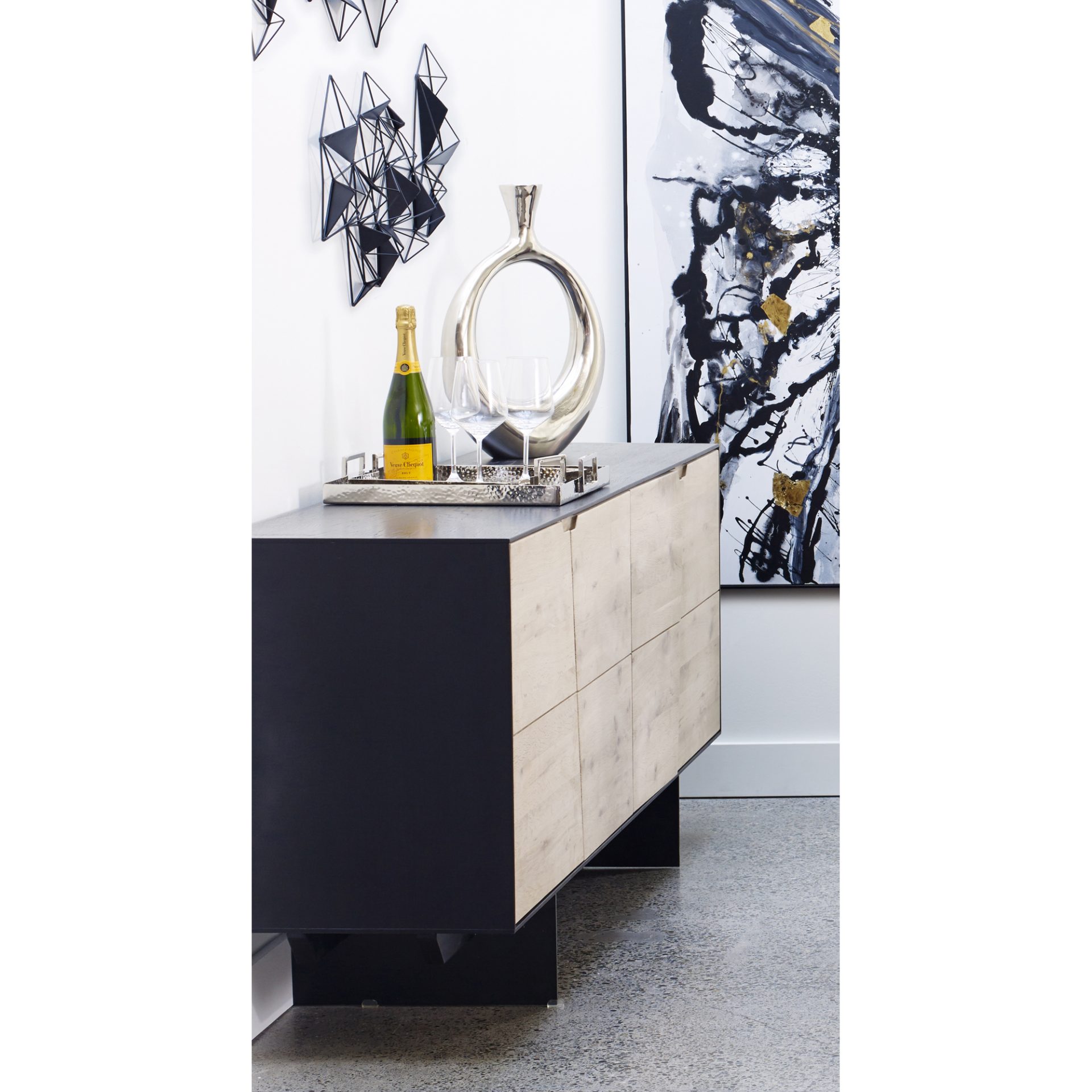 Always trust your instinct. Made from beautiful oak with a white waxed finish, this sideboard boasts a high-end designer look. Featuring contemporary design with ample storage, this buffet has two levels of adjustable interior shelving, a fully finished back and a minimal metal base. Please note, this piece’s wax finish will require a reapplication every 6-12 months to maintain product longevity and beauty. Wax sealant products are available at many hardware stores. Please check our care guide or reach out to our customer service department for any care questions.