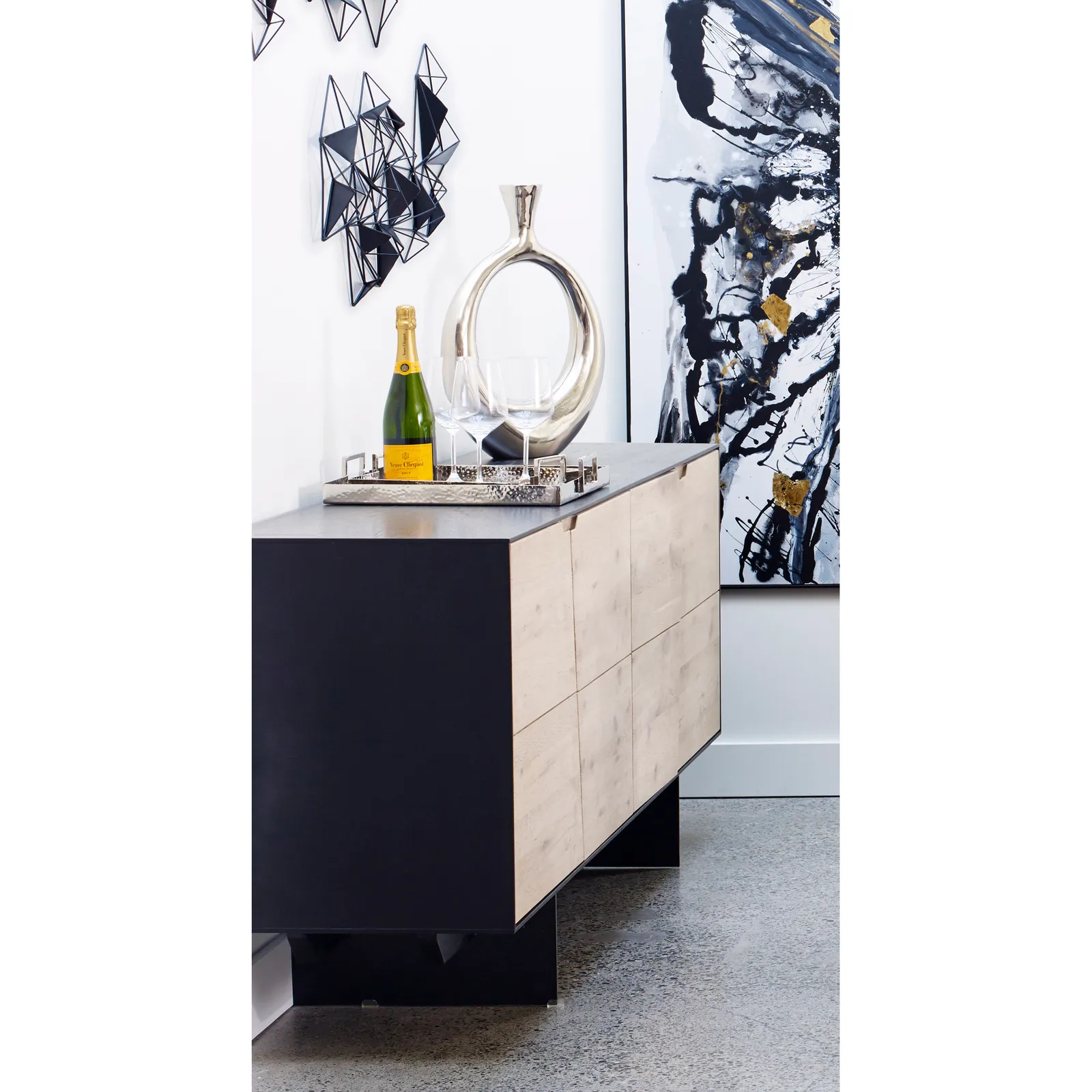 Always trust your instinct. Made from beautiful oak with a white waxed finish, this sideboard boasts a high-end designer look. Featuring contemporary design with ample storage, this buffet has two levels of adjustable interior shelving, a fully finished back and a minimal metal base. Please note, this piece’s wax finish will require a reapplication every 6-12 months to maintain product longevity and beauty. Wax sealant products are available at many hardware stores. Please check our care guide or reach out to our customer service department for any care questions.
